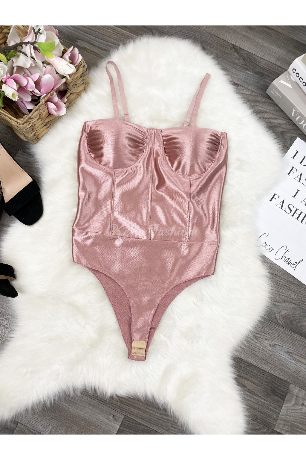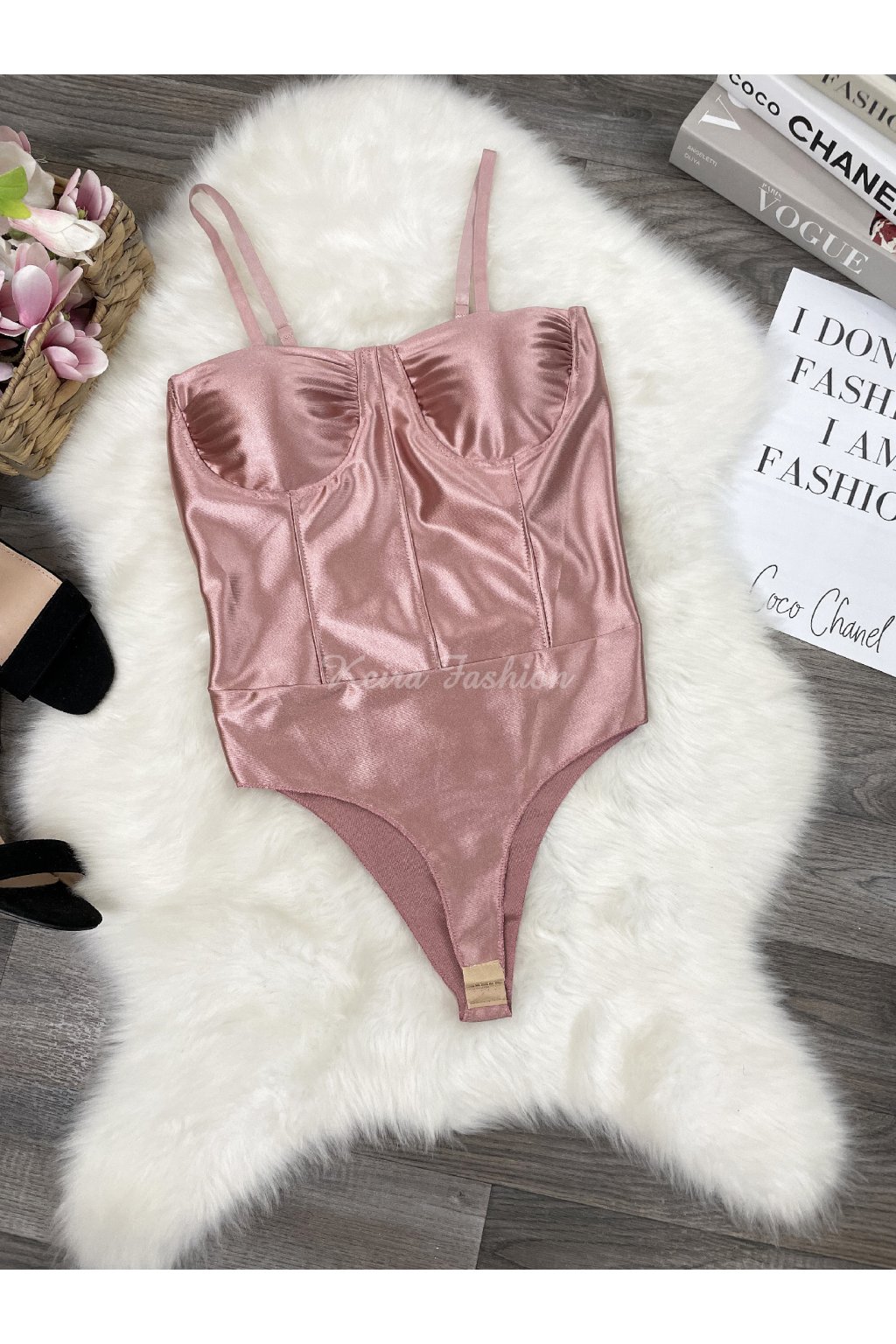 Elegantné saténové body v jemne ružovej farbe je dokonalým kúskom pre ženy, ktoré milujú zvodný a luxusný štýl. Vďaka vystuženým košíkom krásne formuje dekolt a nastaviteľné ramienka sa postarajú o pohodlné nosenie. Zapínanie v rozkroku je riešené praktickými háčikmi. Materiál nie je veľmi elastický, preto odporúčame dbať na správny výber veľkosti. Body je ideálne pre konfekčné veľkosti XS a S, neodporúčame na vyššie postavy.
