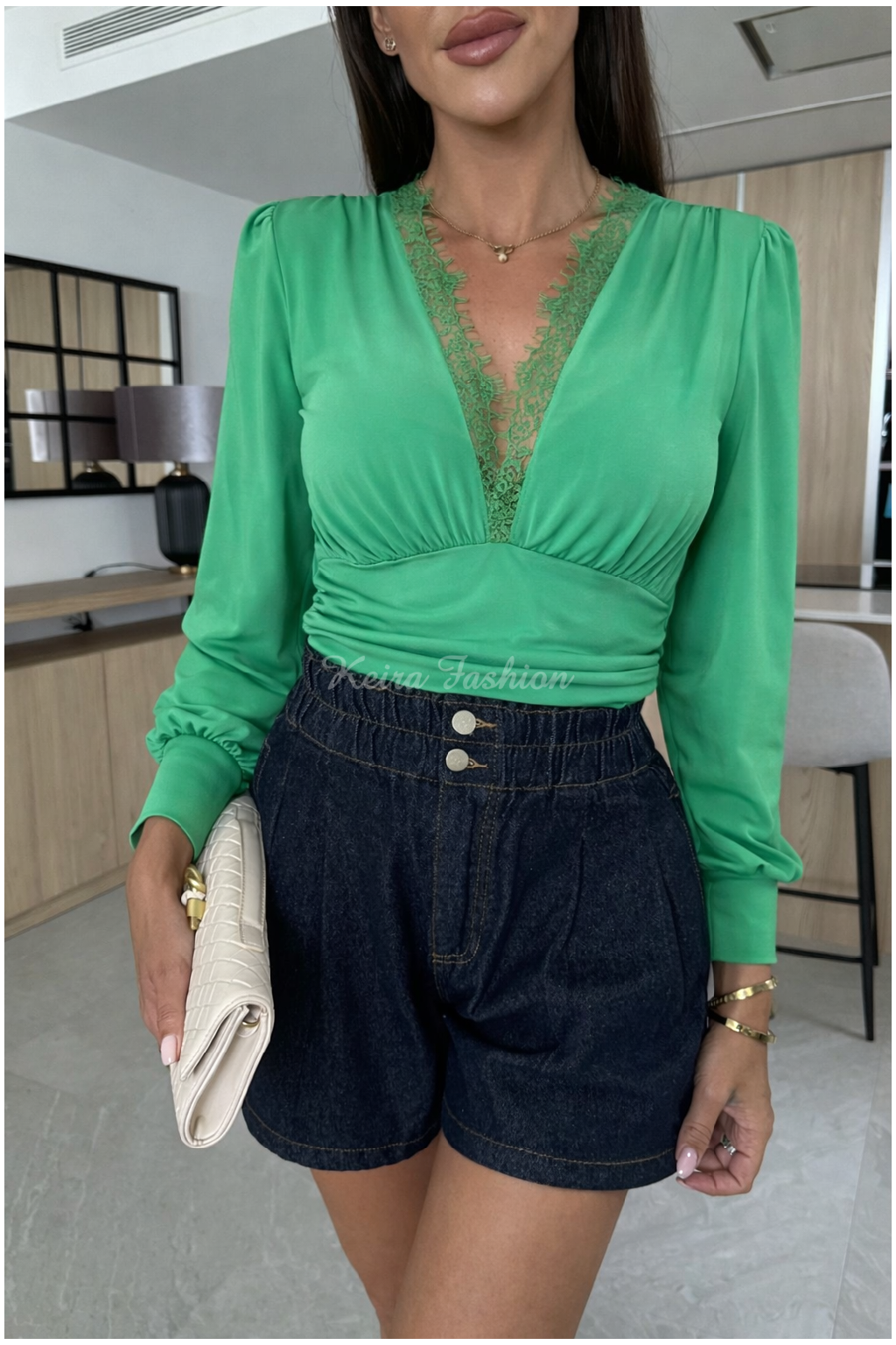 Ak hľadáš kúsok, ktorý pôsobí žensky, moderne a zároveň je praktický, toto zelené body je ideálnou voľbou. Je to univerzálny základ šatníka, ktorý využiješ na jar, leto aj jeseň — a vždy v ňom budeš pôsobiť upravene a sebavedomo.