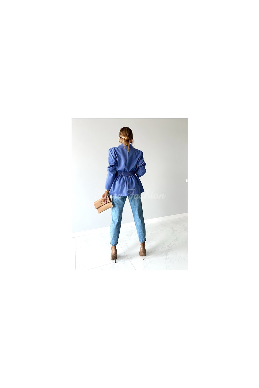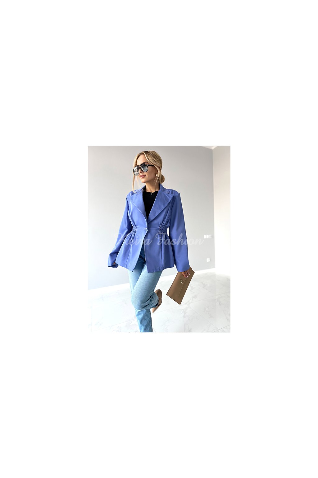 Toto modré sako je štýlový kúsok, ktorý dodá každému outfitu upravený a moderný vzhľad. Vypchávky na ramenách vytvárajú peknú siluetu, zatiaľ čo jemná podšívka zabezpečuje komfort a kvalitné spracovanie. V páse je všitá guma s riasením, ktorá jemne zvýrazní pás bez nutnosti opasku či zapínania. Sako sa nosí voľne otvorené, čo umožňuje vrstvenie a kombinovanie s topmi, tielkami či košeľami. Vďaka sviežej modrej farbe pôsobí žensky, sviežo a štýlovo.