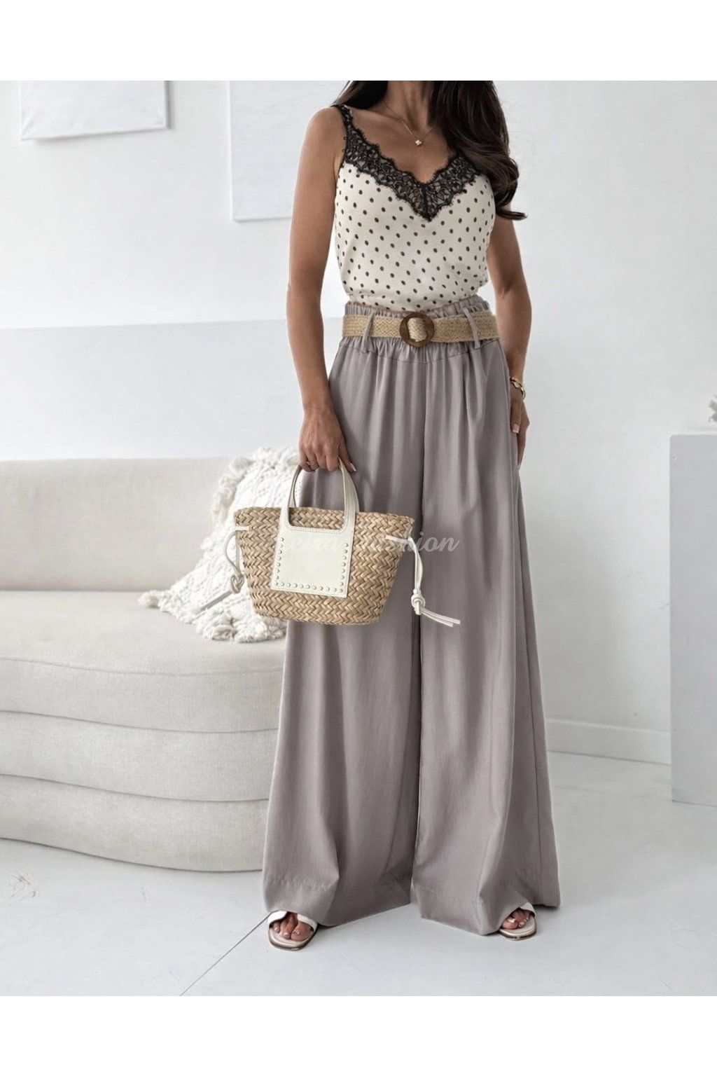 Krémová bodkovaná blúzka s čiernou čipkou a nastaviteľnými ramienkami