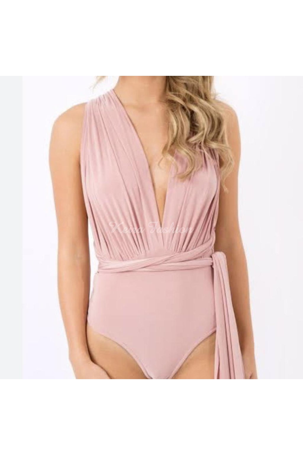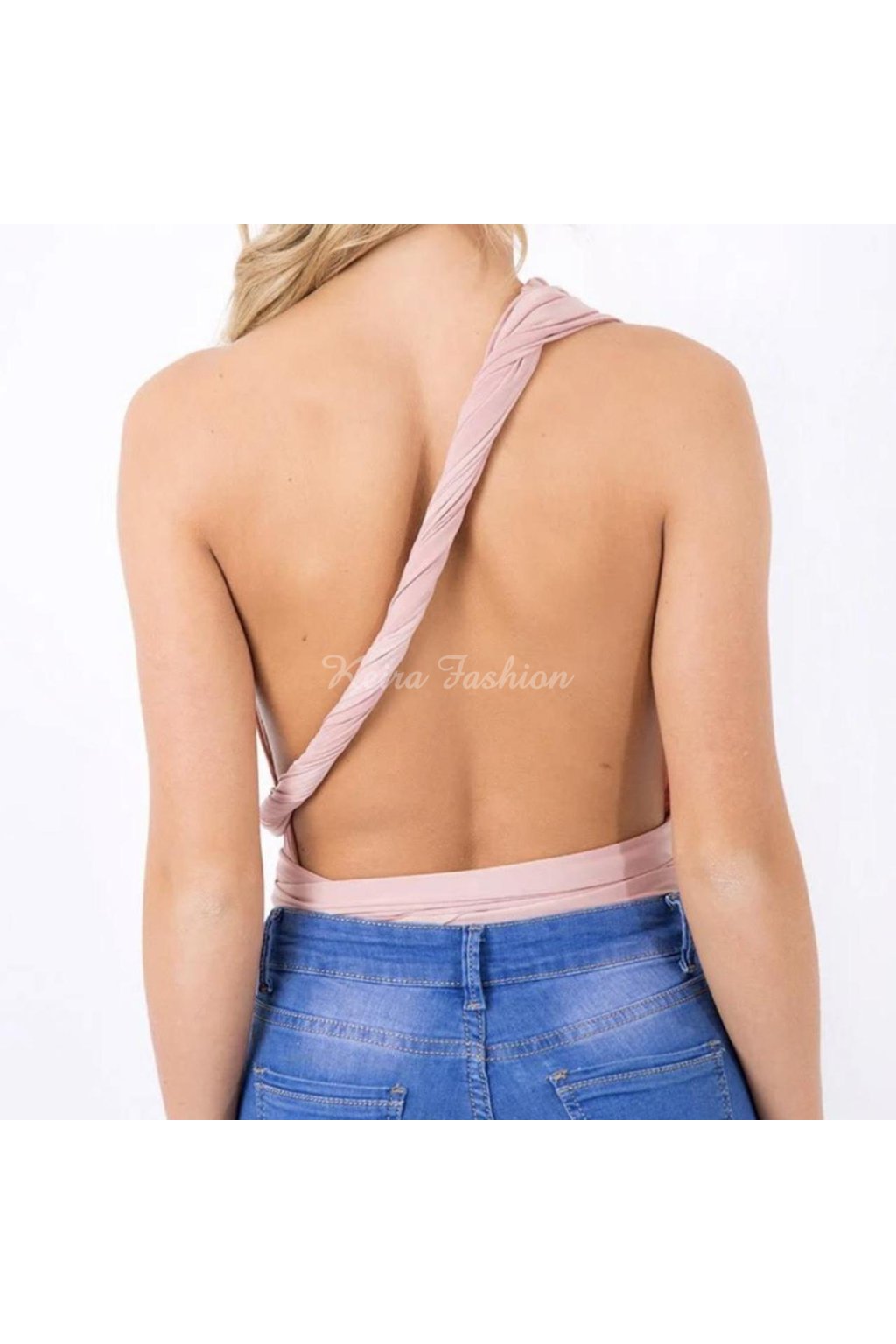 Tieto dámske ružové multiway body je dokonalým kúskom pre každú ženu, ktorá miluje variabilitu a štýl. Je navrhnuté tak, aby si ho mohla nosiť na viacero spôsobov – s viazaním okolo krku, na jedno rameno, bez ramienok či s krížením na chrbte. Jediný kúsok tak ponúka nekonečné možnosti stylingu. Materiál je elastický a príjemný na pokožke, čo zaručuje maximálne pohodlie a dokonalé prispôsobenie postave. Jemne ružová farba pôsobí romanticky a zároveň univerzálne – ľahko sa kombinuje s džínsami, sukňou či elegantnými nohavicami.