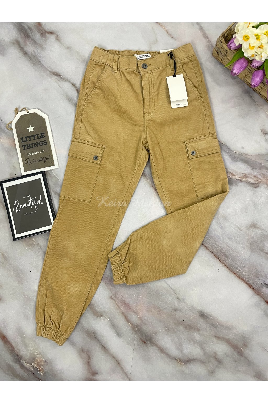 Dámske horčicovo-hnedé menčestrové cargo nohavice z prémiovej kolekcie sú skvelou voľbou pre ženy, ktoré hľadajú štýl aj pohodlie. Vyrobené z mäkkého, príjemného menčestru a doplnené o kvalitné spracovanie, ktoré zaručuje dlhú životnosť. Nohavice majú praktické bočné a cargo vrecká, elastický pás so zapínaním na gombík a elastické manžety na členkoch. Ideálne na bežné mestské nosenie, prechádzky aj voľný čas.