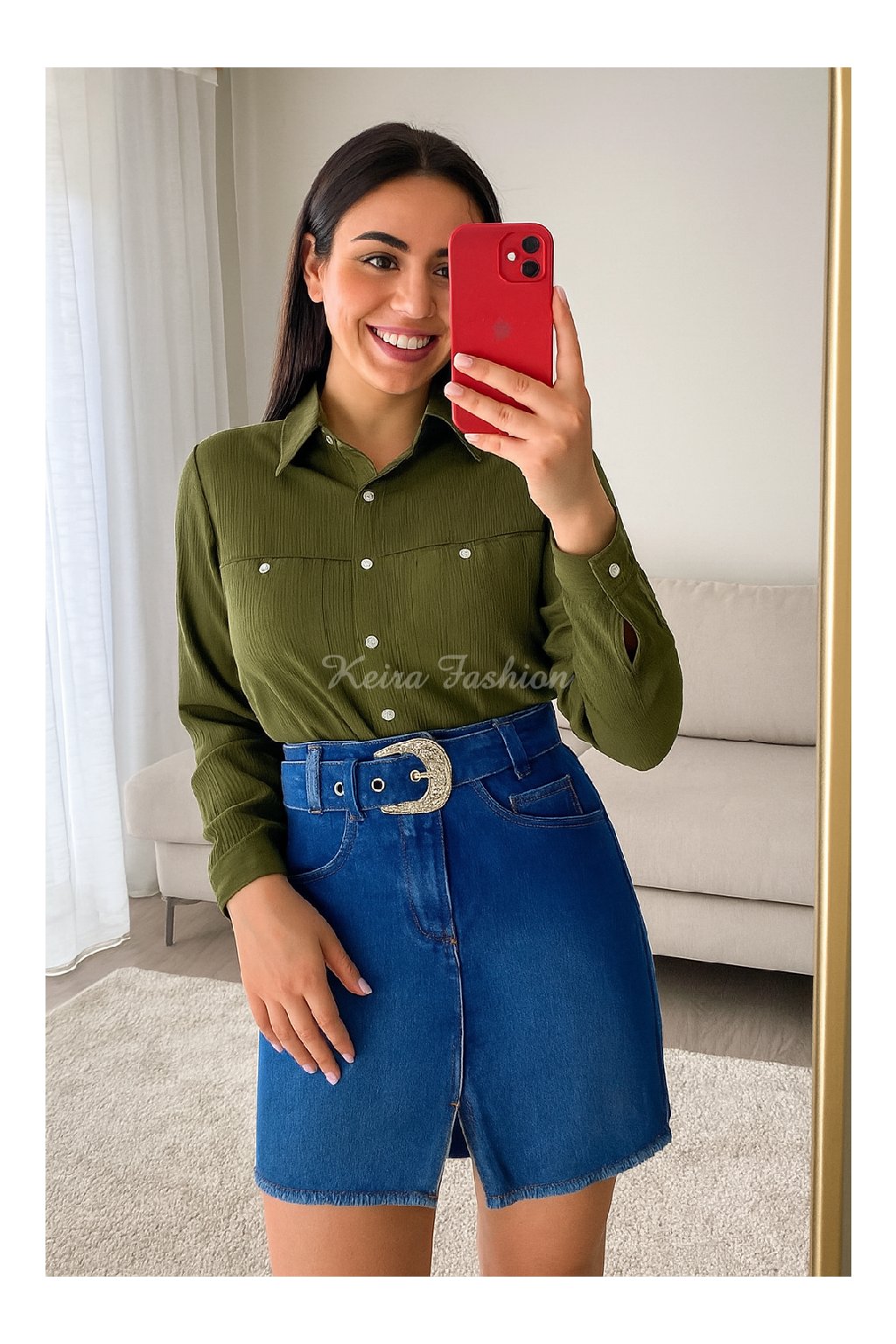 Dámska riflová sukňa značky Parisian. Vyrobená z kvalitného elastického materiálu, ktorý ti zaručí pohodlie počas celého dňa a zároveň krásne zvýrazní postavu. Sukňa má funkčné predné aj zadné vrecká, takže si nemusíš robiť starosti, kam s drobnosťami. Zapínanie je riešené klasickým gombíkom a zipsom vpredu. Súčasťou je aj štýlový opasok s výraznou kovovou prackou, ktorý dotvára celkový vzhľad a dá sa ľubovoľne nosiť alebo kombinovať s inými kúskami. Spodná časť sukne má jemne rozstrapkaný okraj a decentný predný rozparok, vďaka čomu pôsobí mladistvo a ležérne. Táto sukňa sa hodí na množstvo príležitostí – od bežného dňa v meste až po večerné posedenie s kamarátkami. Skombinuj ju s topom, lodičkami alebo teniskami a máš dokonalý outfit.