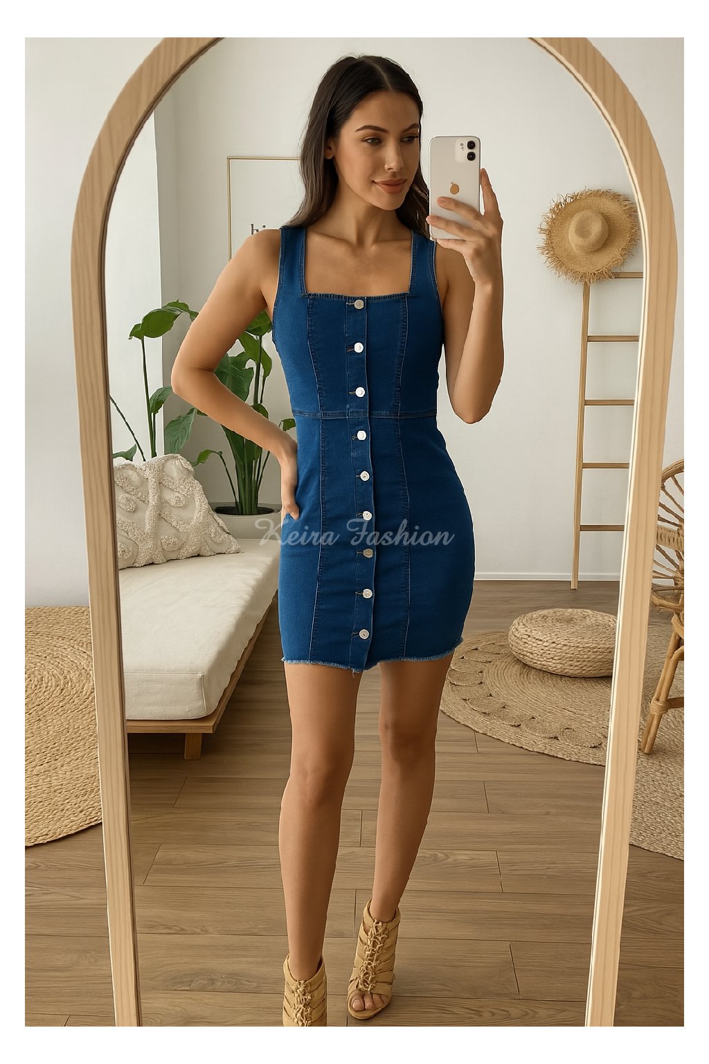 Dámske riflové šaty značky Parisian vyrobené z elastickej bavlny pre maximálne pohodlie. Strih bez rukávov so zapínaním na gombíky po celej prednej dĺžke. Tvarovaný slim fit strih zvýrazňuje siluetu, pričom pružný materiál zabezpečuje komfort pri nosení. Klasická modrá denim farba a detailné prešitie dodávajú šatám moderný a nadčasový vzhľad. Vhodné na bežné nosenie aj na neformálne príležitosti.