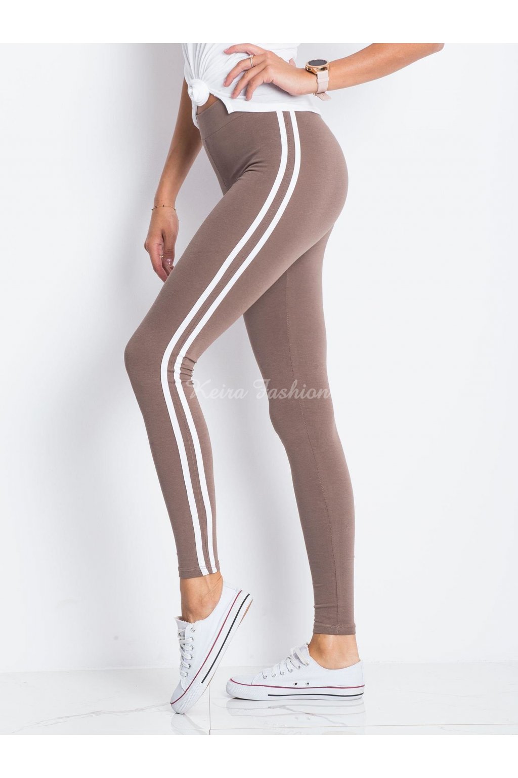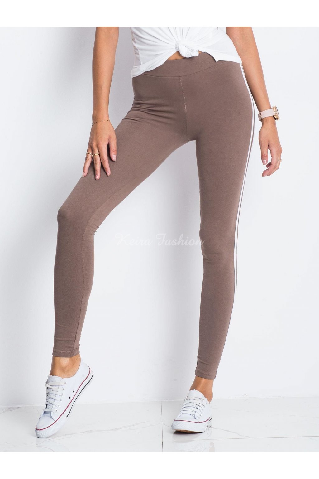 Bavlnené legíny s bočnými prúžkami Basic - hnedé