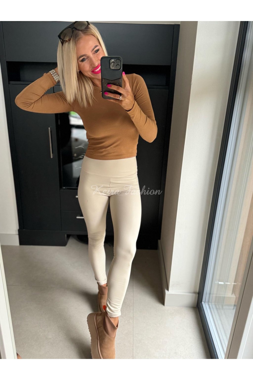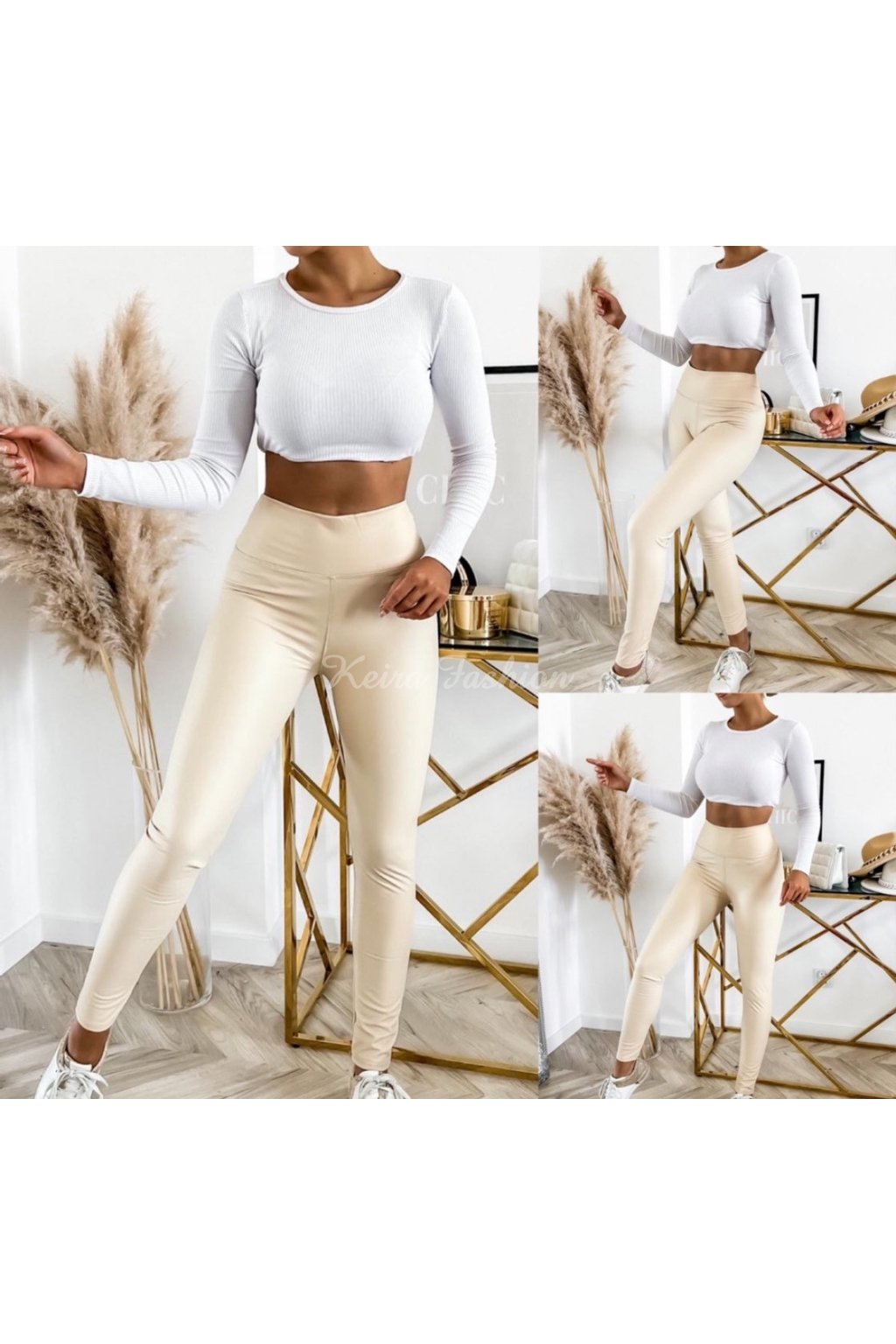 Koženkové legíny v krémovej farbe sú ideálne na prechodné obdobia aj chladnejšie dni. Majú úzky priliehavý strih typu skinny fit, ktorý pekne kopíruje línie tela, a vysoký široký pás s jemným pružným zakončením, ktorý spevňuje a tvaruje postavu bez nepríjemného stiahnutia. Vnútorná strana legín je mierne zateplená, čo poskytuje pohodlie počas chladnejších dní. Vďaka neutrálnej krémovej farbe ich jednoducho skombinujete s topmi rôznych farieb a štýlov, či už do práce, na voľný čas alebo večerné výlety.