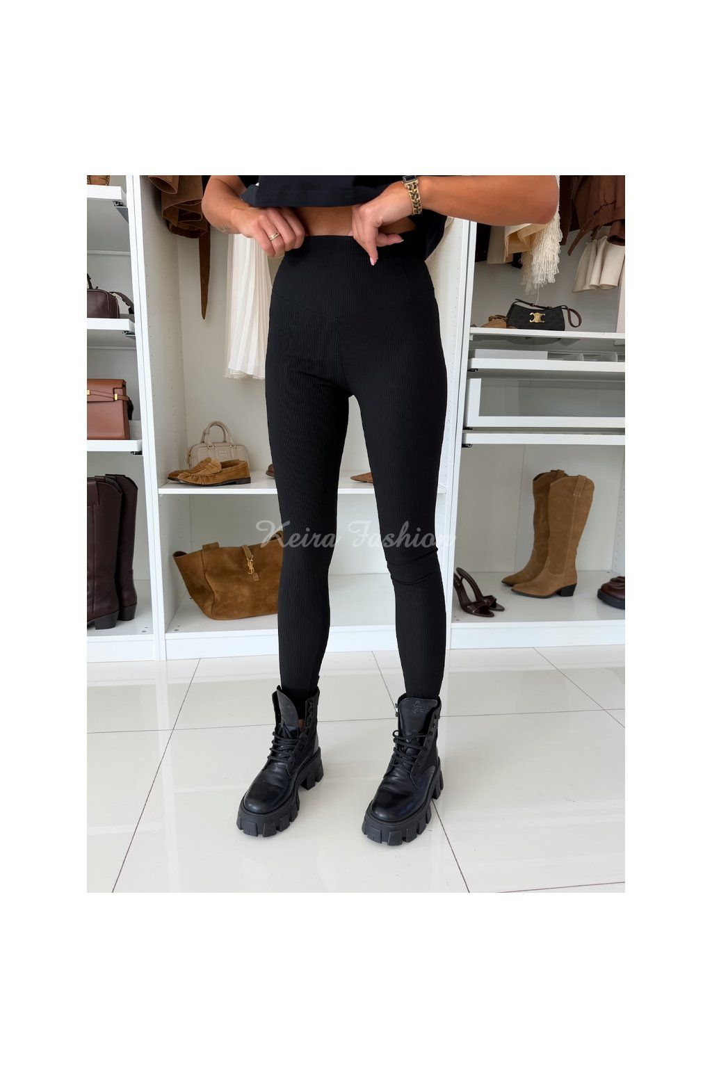 Čierne vrúbkované legíny sú ideálnym kúskom na každý deň – pohodlné, elastické a zároveň mimoriadne štýlové. Vďaka jemnej vrúbkovanej štruktúre krásne formujú postavu, opticky zoštíhľujú nohy a dodávajú outfitu moderný športovo‑elegantný vzhľad. Materiál je príjemný, prispôsobivý a drží tvar počas celého nosenia. Vysoký pás poskytuje komfort aj tvarujúci efekt, takže sa hodia na bežné nosenie, cestovanie, prechádzky aj voľnočasové aktivity. Perfektne ladia s crop topom, oversize mikinou, koženou bundou či chunky čižmami.