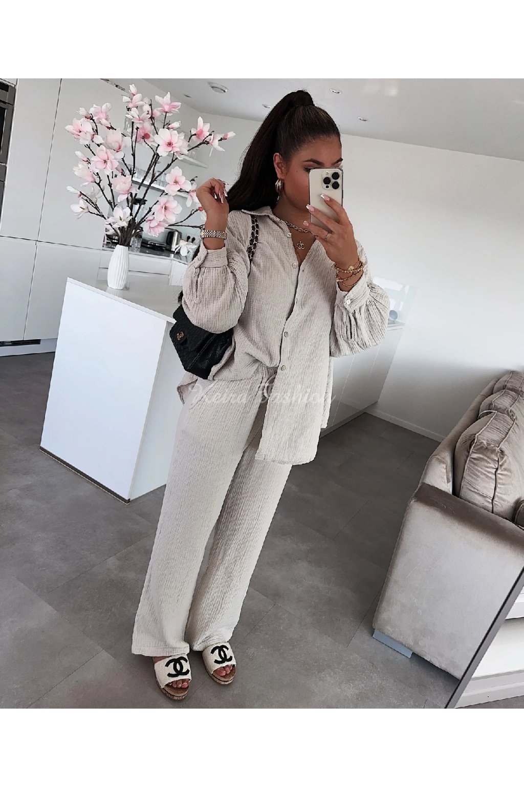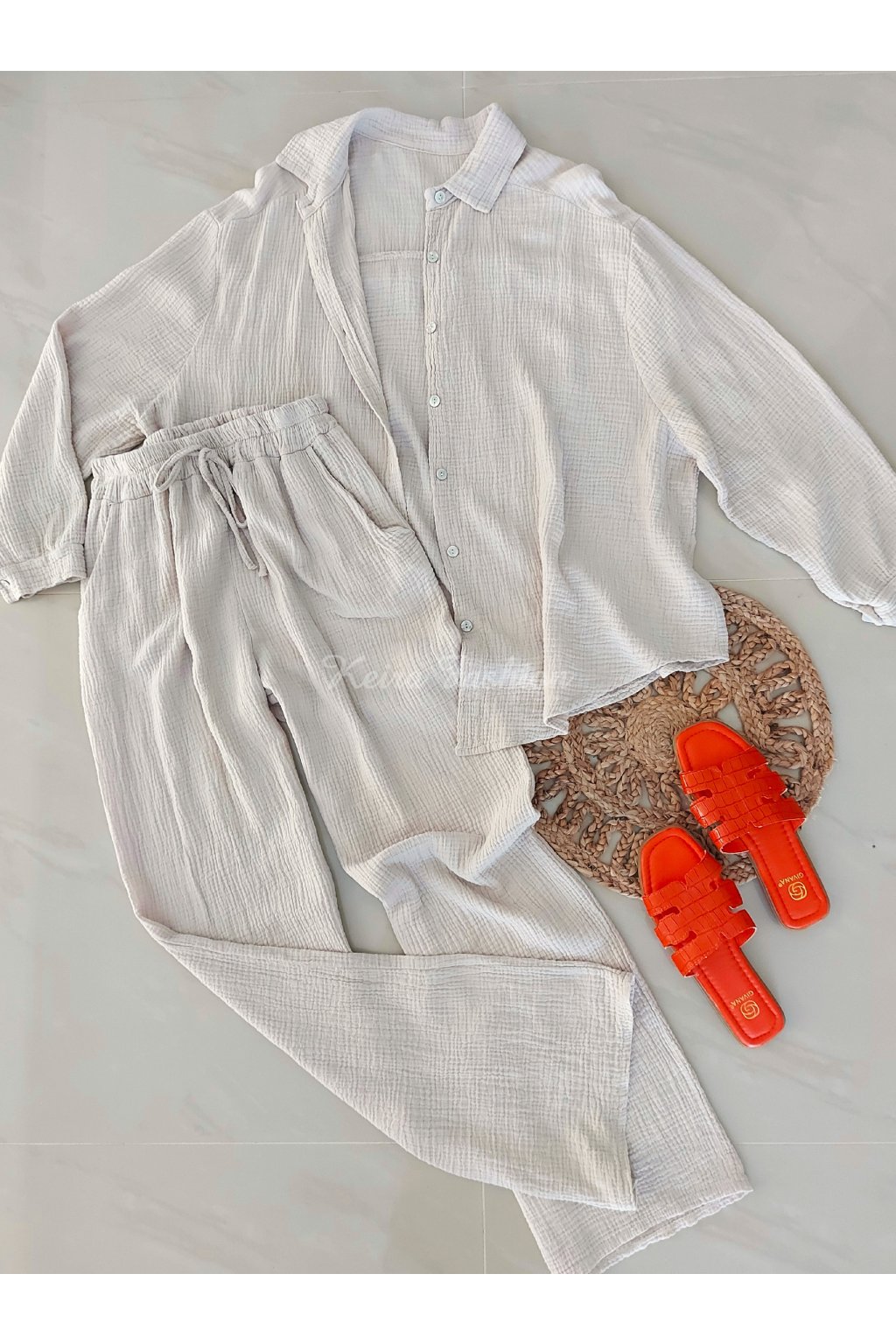 Béžový mušelinový komplet DORA - košeľa + nohavice