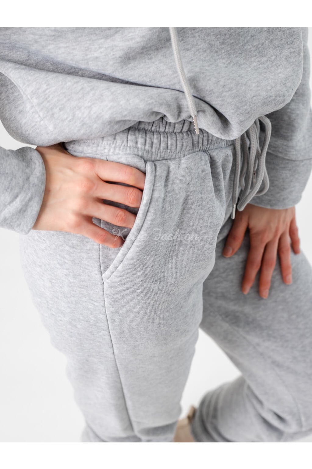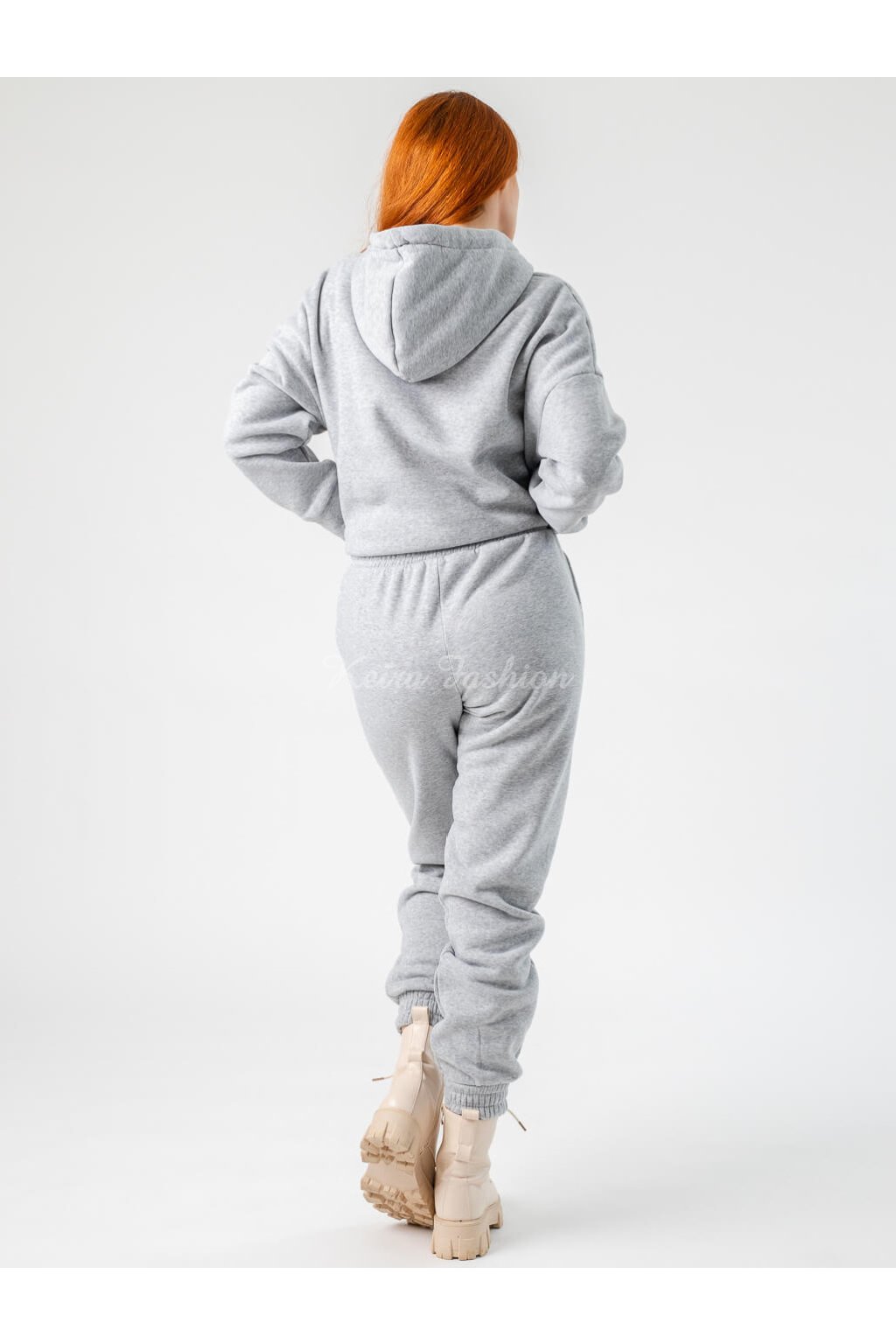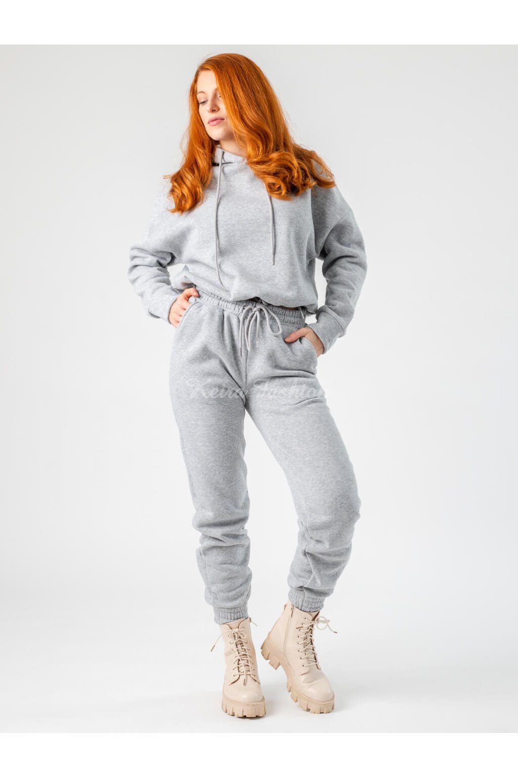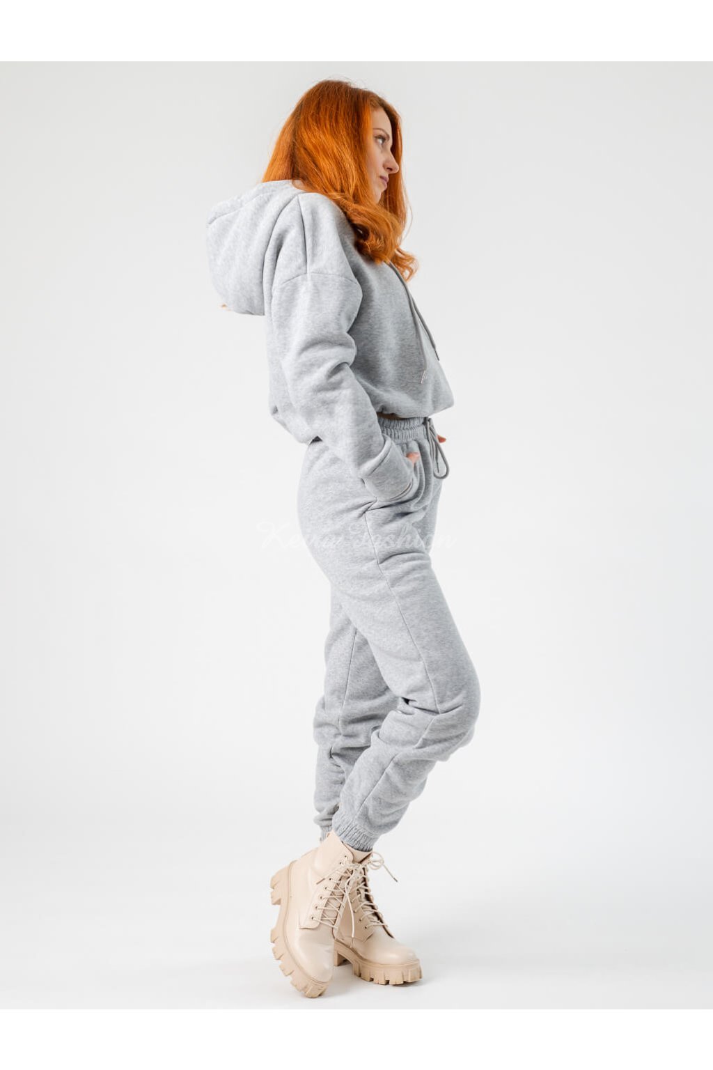 Pohodlná a teplá dámska sivá tepláková súprava, ktorá pozostáva z mikiny s kapucňou a teplákov s praktickými vreckami. Tepláky majú gumičkový patent v páse aj na členkoch, čo zabezpečuje ideálne prispôsobenie a komfort pri nosení. Súprava je zvnútra zateplená, takže je ideálna na chladnejšie dni, keď chceš zostať v teple a zároveň vyzerať štýlovo a pohodlne.