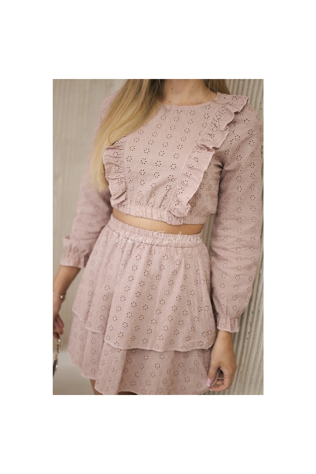 Komplet BOHO blúzka so sukňou - púdrovo ružová