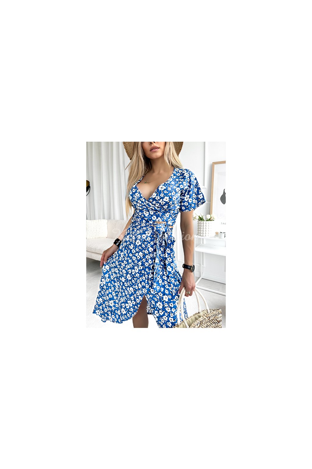 Dámska kvetinová súprava pozostávajúca z krátkej blúzky a sukne. Blúzka má zapínanie na boku na zips. Materiál nie je elastický.