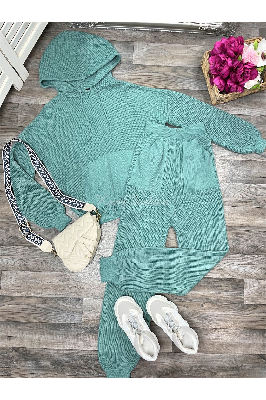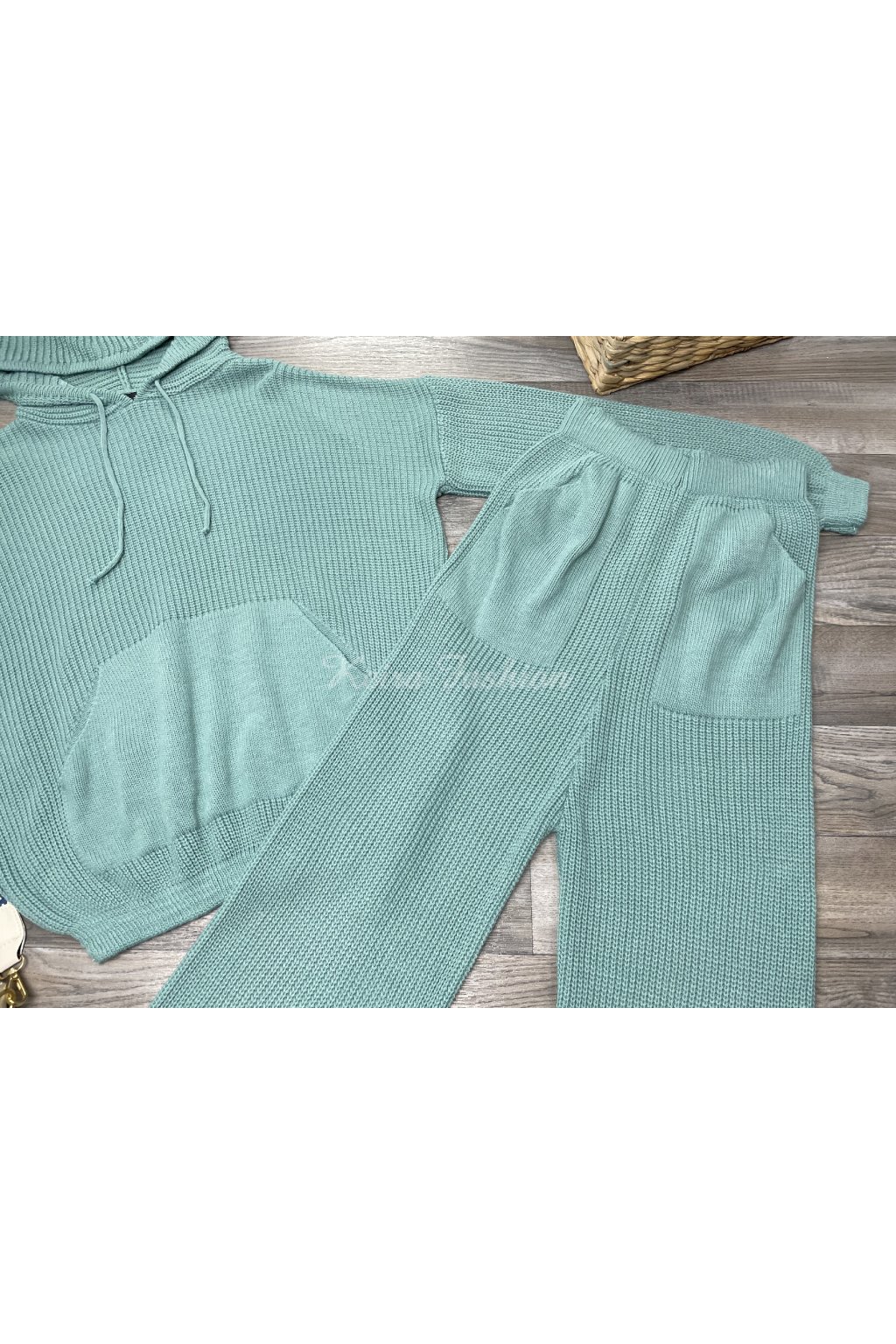 Dopraj si štýlový relax s našou úpletovou súpravou v mentolovej farbe, ktorá spája pohodlie s moderným dizajnom. Súprava pozostáva z kapucňovej mikiny a teplákov, ktoré sú navrhnuté tak, aby ti poskytli maximálny komfort počas celého dňa. Mikina má praktické predné vrecko, ideálne na zahriatie rúk alebo odloženie drobností. Tepláky sú vybavené prednými vreckami a elastickým pásom s gumou, vďaka čomu sa dokonale prispôsobia tvojej postave. Elastický úpletový materiál je mäkký, príjemný na dotyk a neobmedzuje v pohybe – ideálny na domáce leňošenie, prechádzky či neformálne stretnutia. Doplň outfit o tenisky a crossbody kabelku a vytvor si dokonalý casual look, ktorý neostane bez povšimnutia.