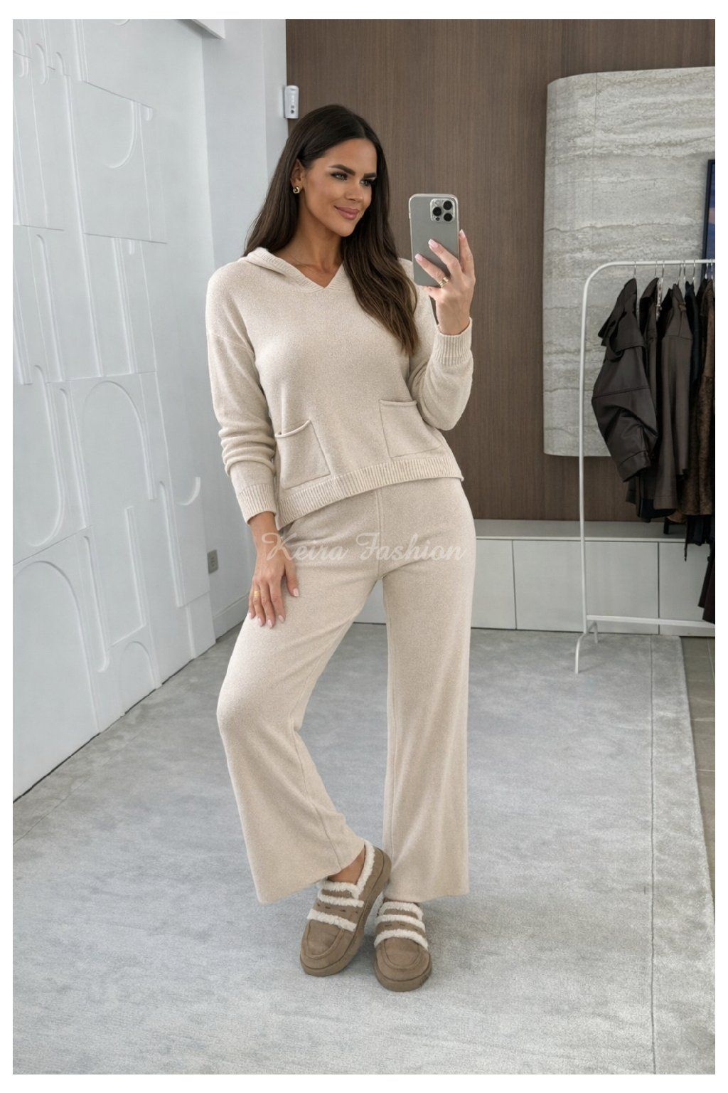 Objavte dokonalé spojenie pohodlia a štýlu s touto dámskou úpletovou súpravou v béžovej farbe! Vyrobená z kvalitného, mäkkého a elastického materiálu s vysokým podielom viskózy a prímesou polyamidu, ktorý zaručuje príjemný pocit pri nosení. Vrchný diel má voľný, moderný strih s praktickými vreckami a pohodlnou kapucňou vzadu – ideálny na každodenné nosenie aj domáce leňošenie. Nohavice majú pohodlný, mierne uvoľnený strih, ktorý spolu s gumou v páse zaručuje komfort pri nosení. Táto súprava je ideálnym riešením pre ženy, ktoré hľadajú štýlové, no zároveň maximálne pohodlné oblečenie.