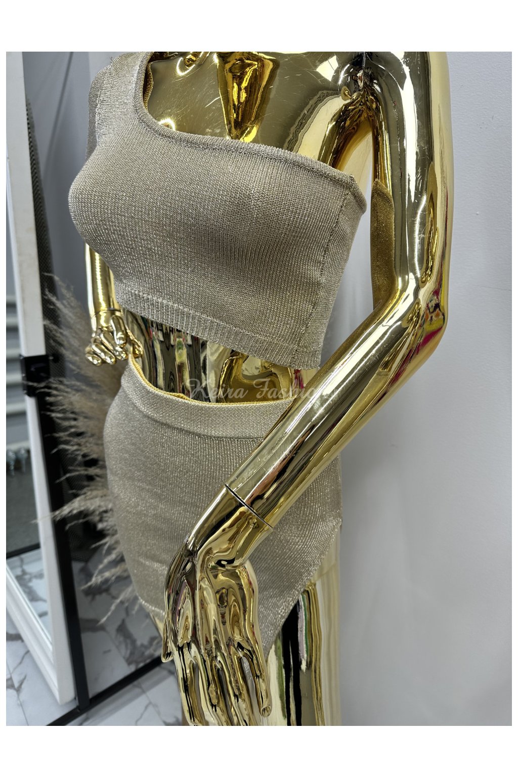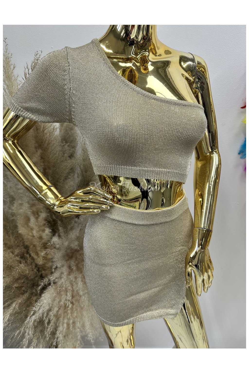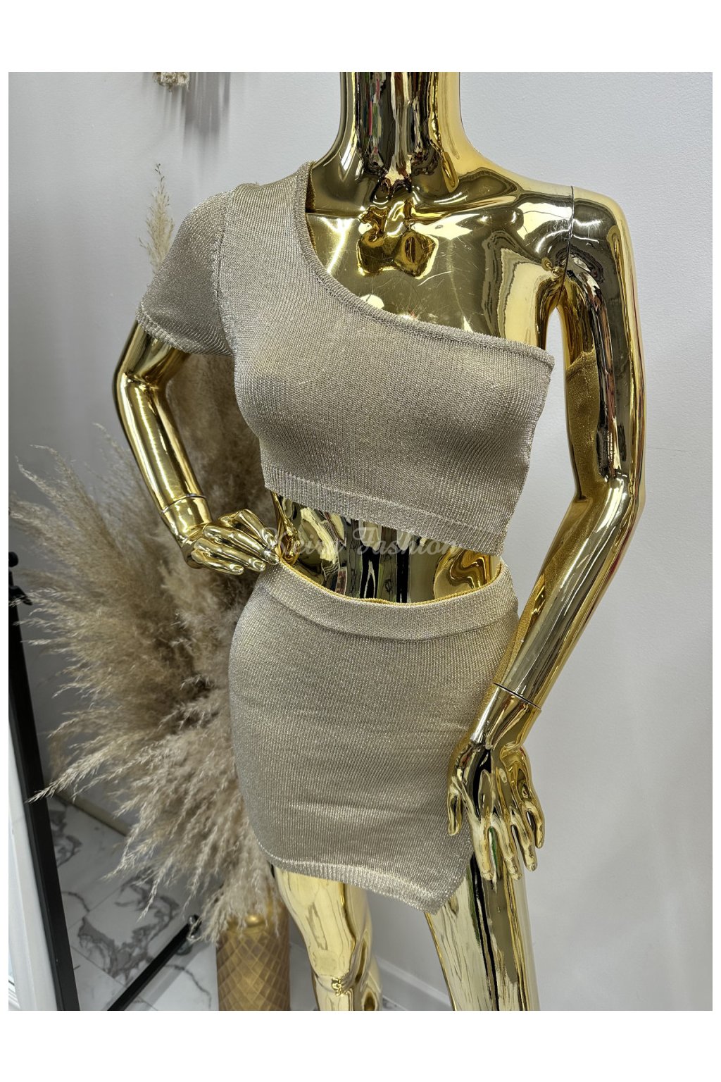 Zlatý trblietavý úpletový set DALIE - crop top+sukňa