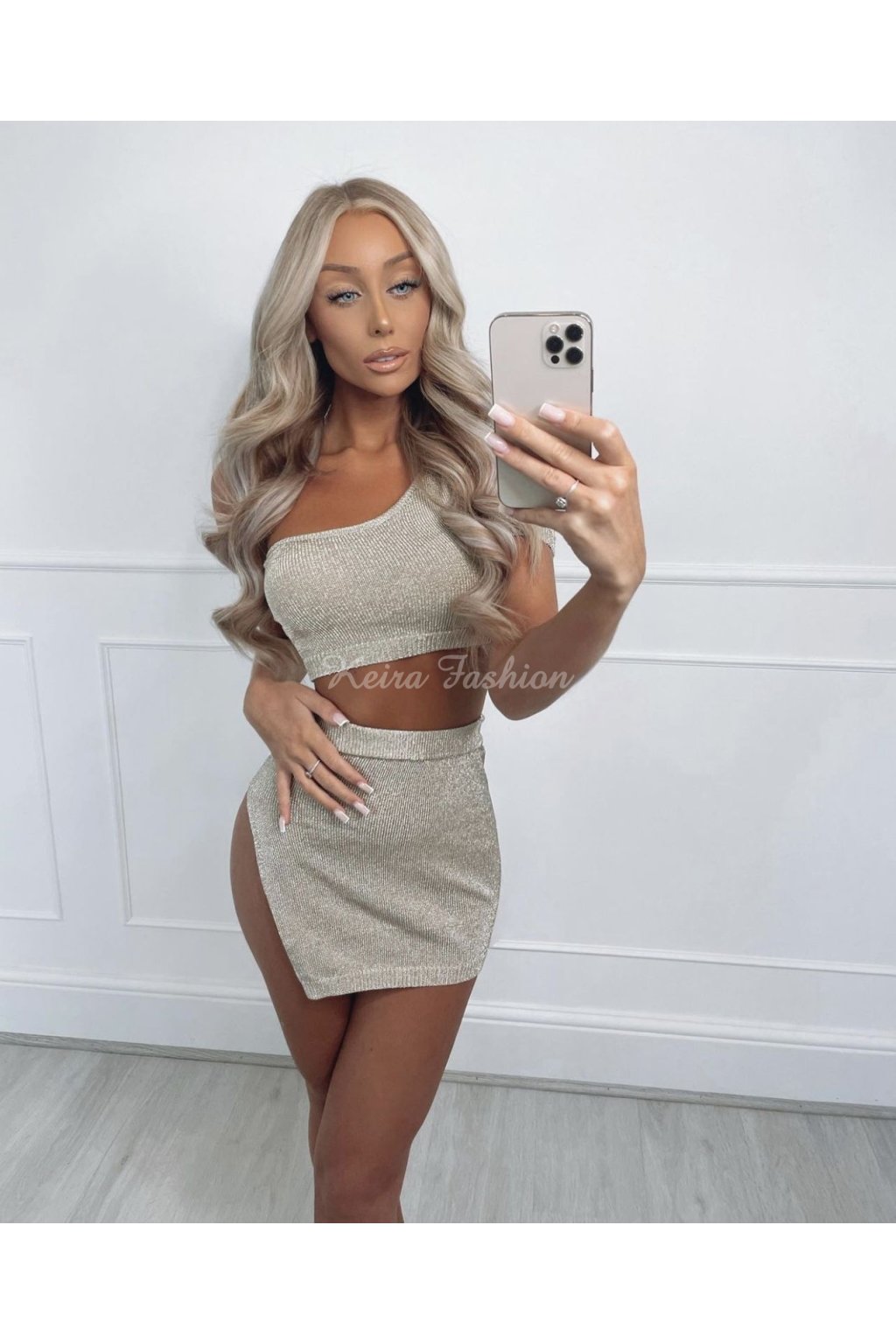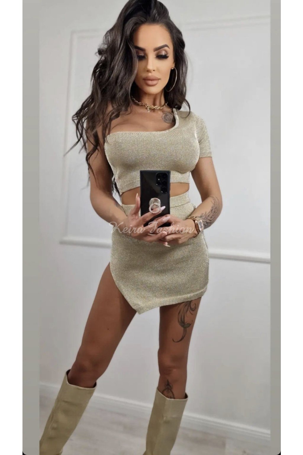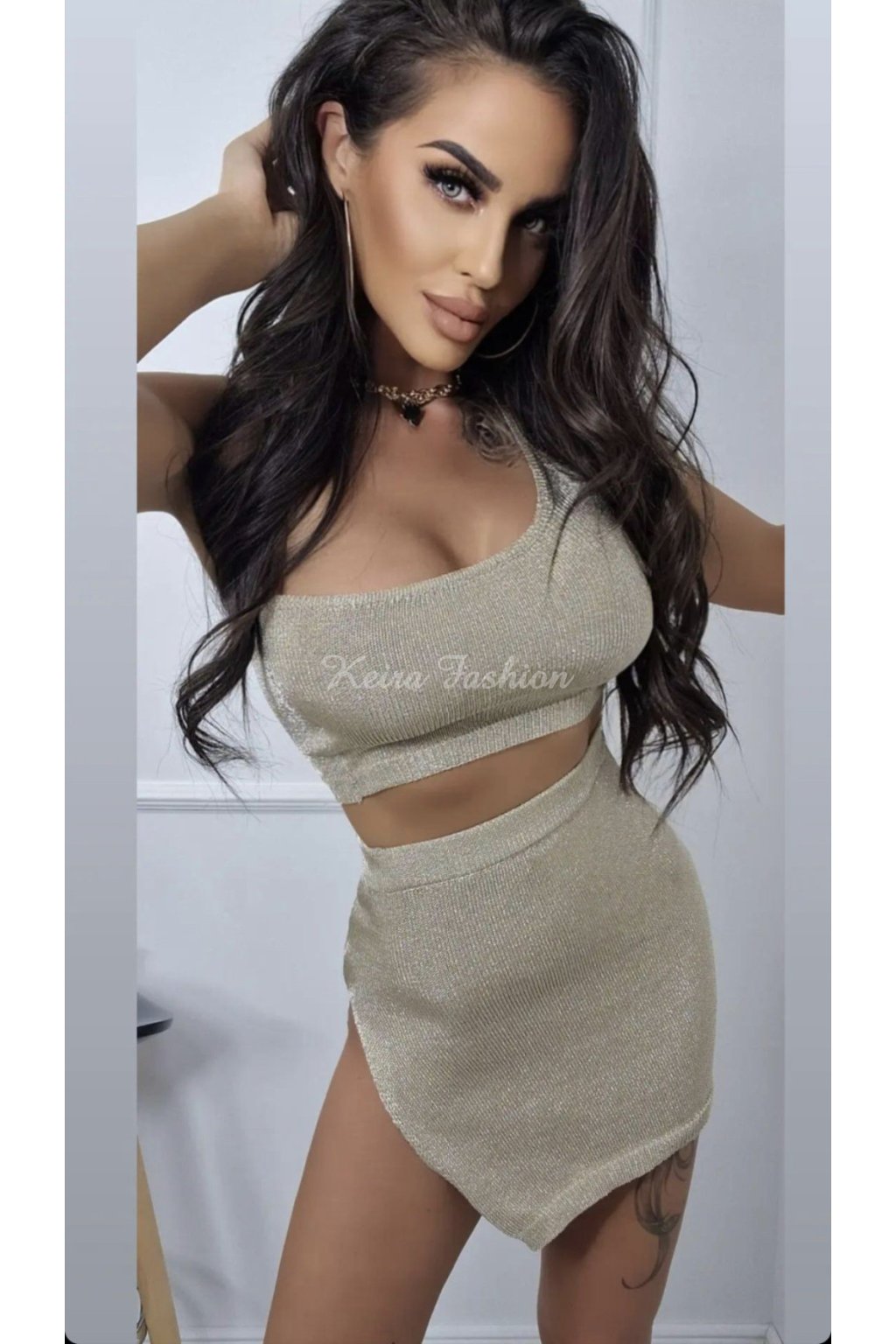 Vykroč do leta štýlovo s týmto úpletovým zlatým kompletom s metalickým efektom, ktorý je ako stvorený na plážové prechádzky, dovolenkové večery či festivalové dobrodružstvá. Jednoramenný crop top pôsobí odvážne a ženský, zatiaľ čo sukňa krásne zvýrazní siluetu. Zlatistý odtieň nádherne vynikne na opálenej pokožke a dodá ti ten pravý „sun-kissed glow“. Komplet je vyrobený z príjemného úpletového materiálu s vysokým podielom viskózy, vďaka čomu je ľahký, priedušný. Skombinuj ho s sandálkami, klobúkom a slnečnými okuliarmi – a tvoj letný look je hotový!