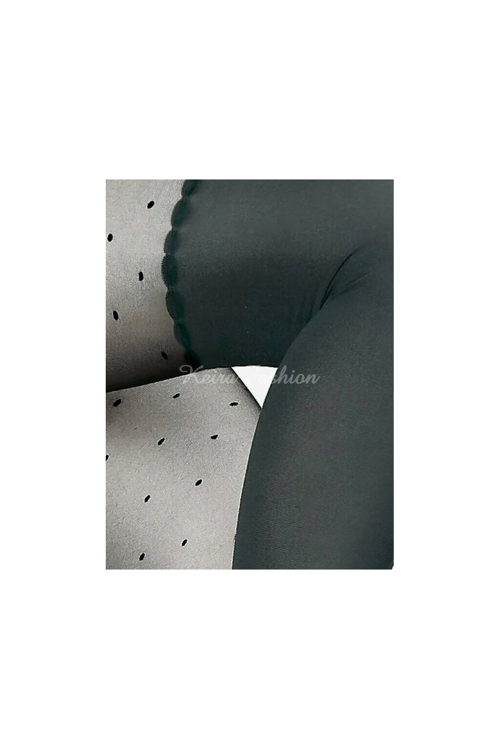 Dámske pančuchy s originálnym dizajnom. Ideálne na každodenné nosenie aj špeciálne príležitosti, keď chcete zvýrazniť svoj outfit s nádychom rafinovanosti a elegancie. Hrúbka vrchnej časti je 20 DEN, čo zaručuje jemný a priehľadný vzhľad so vzorom bodiek, spodná časť je 80 DEN – matná, nepriehľadná. Materiál je z elastanu a polyamidu pre maximálnu pružnosť a komfort. Farba je čierna s decentným vzorom, vhodné k elegantným šatám, sukniam aj vysokým podpätkom.