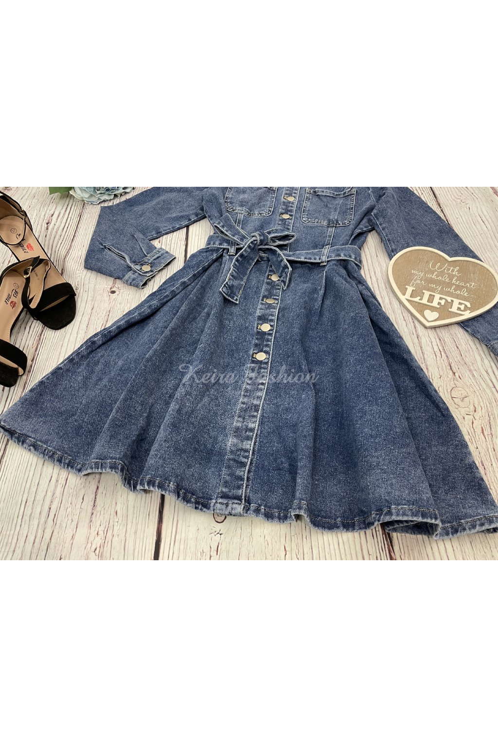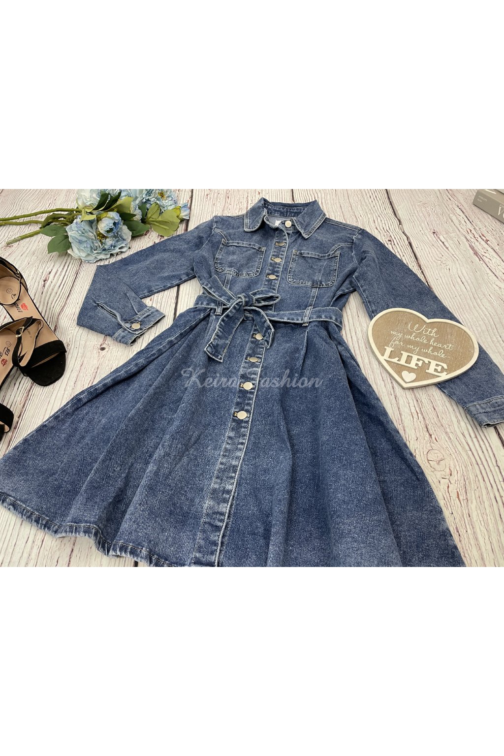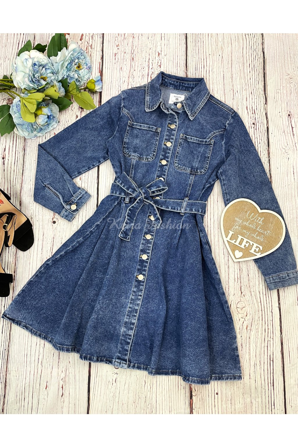 Štýlové tmavomodré riflové šaty sú súčasťou prémiovej riflovej kolekcie, navrhnutej vo Francúzsku s dôrazom na kvalitu. Dlhé rukávy a mierne elastický materiál zaručujú pohodlie počas celého dňa. V páse sa nachádza látkový riflový opasok, ktorý krásne zvýrazní siluetu a dodá outfitu ženský šmrnc. Ide o výrazný kúsok oblečenia, ktorý určite upúta pozornosť.