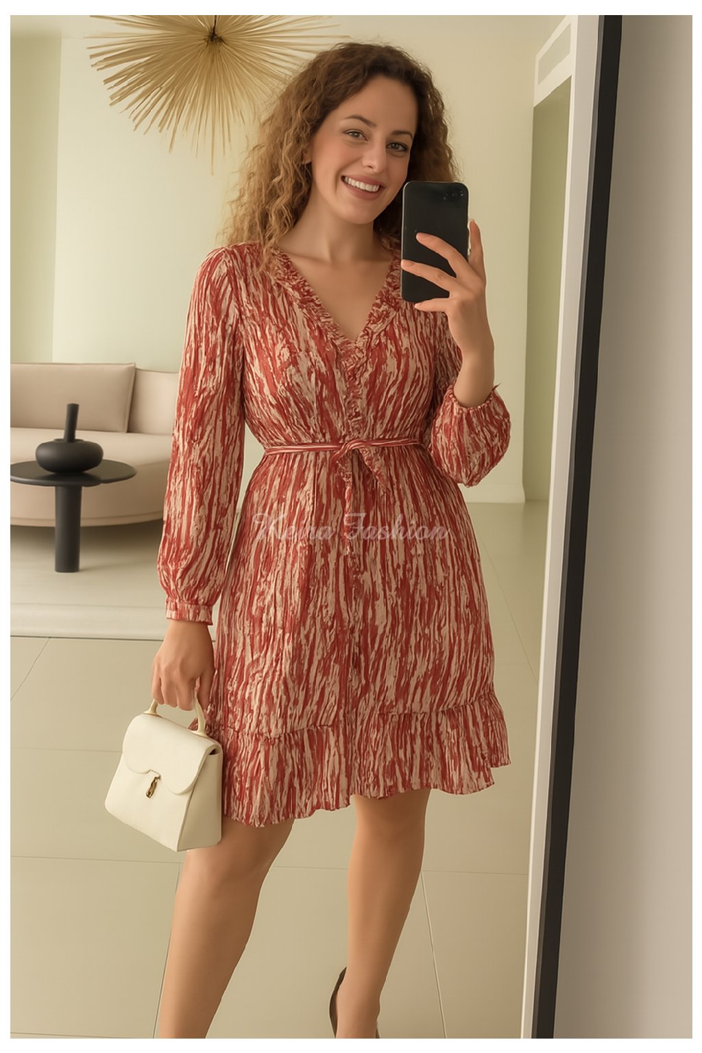 Objavte naše štýlové a pohodlné červené vzorované šaty, ktoré sú vyrobené z ľahkého, vzdušného materiálu bez elastanu. Šaty sú podšité, okrem rukávov, čo zaručuje príjemný pocit pri nosení a dokonalú priedušnosť. V páse sa nachádza pohodlná guma doplnená látkovým opaskom na viazanie, ktorý zvýrazní vašu postavu. Zapínanie je riešené praktickými gombíkmi po celej dĺžke šiat aj na konci rukávov, čo dodáva šatám elegantný a nadčasový vzhľad. Vpredu sú volány, ktoré šatám dodávajú ženskosť a jemný romantický štýl. Dlhé rukávy sú zakončené jemným gombíkovým zapínaním, ktoré umožňuje upraviť šírku rukávov podľa potreby. Tieto šaty sú ideálnou voľbou na bežné nosenie, do práce, na večerné stretnutia alebo spoločenské udalosti.
