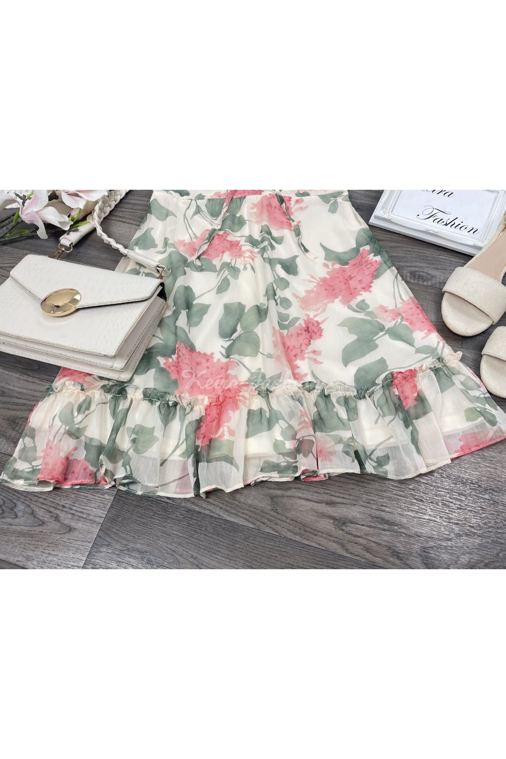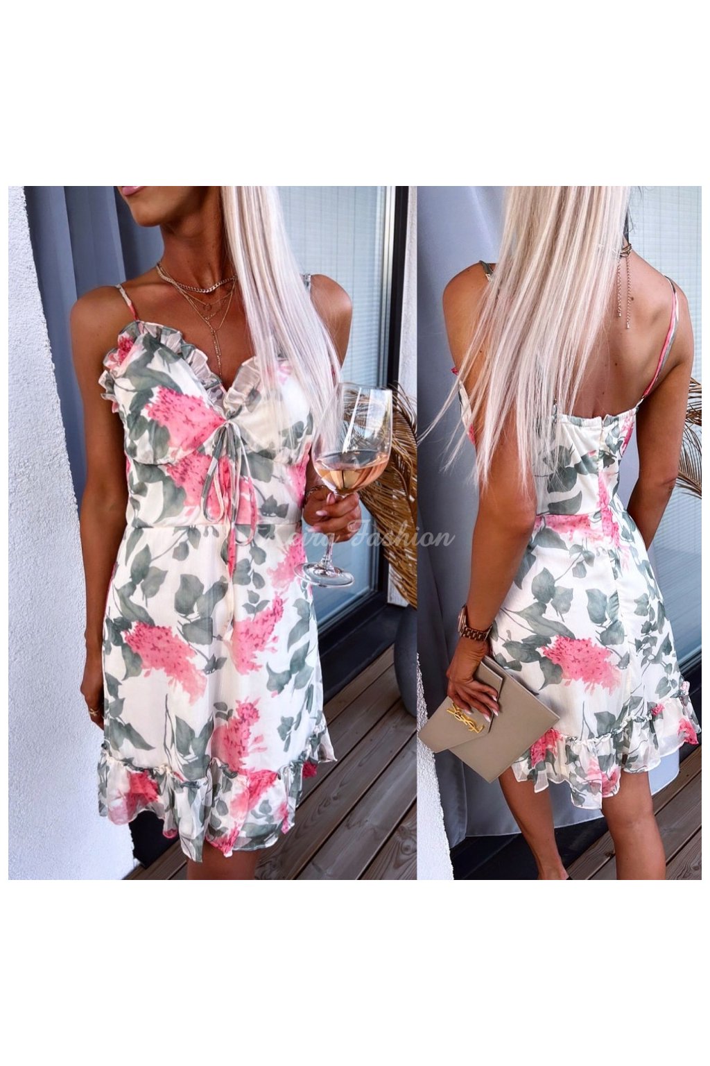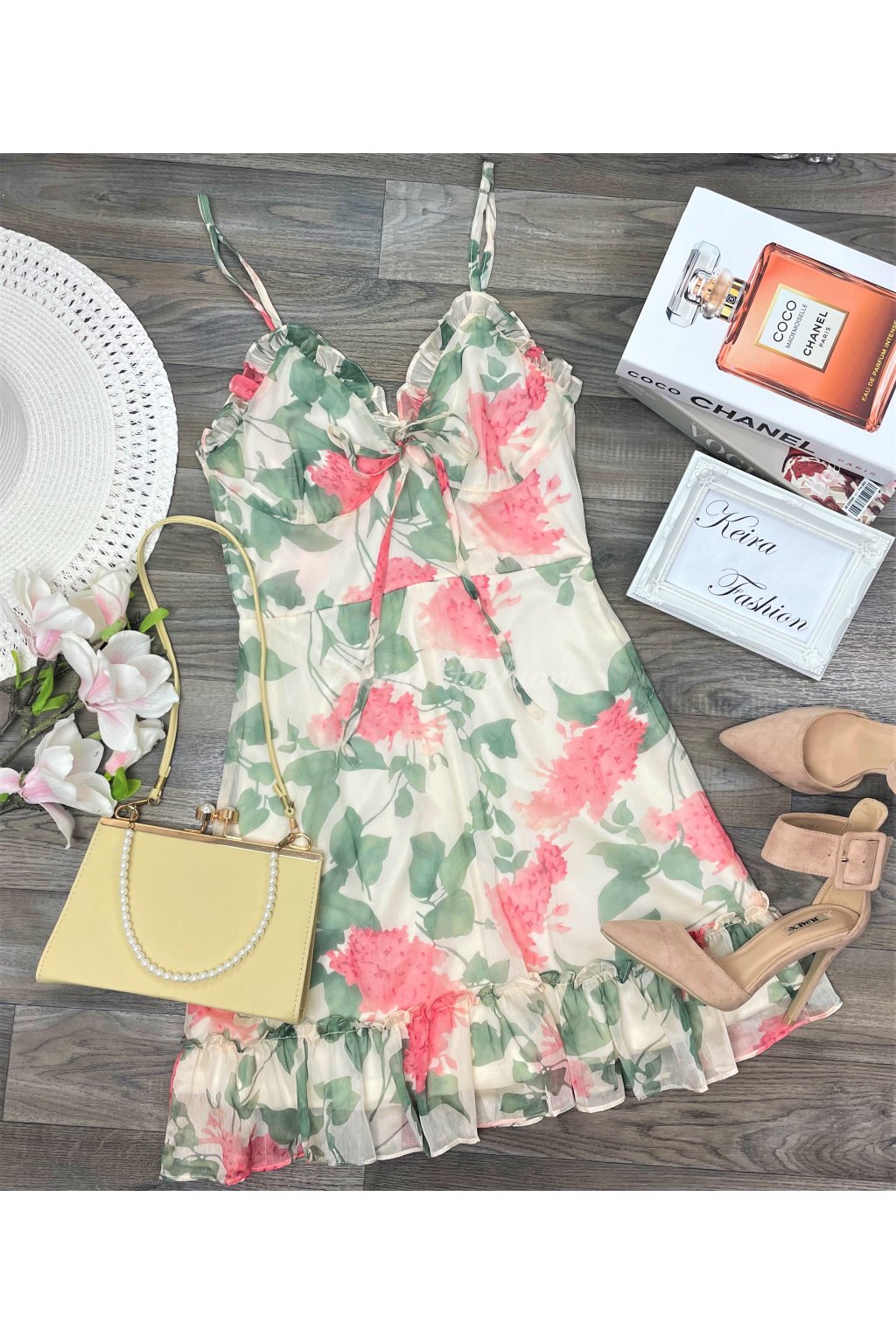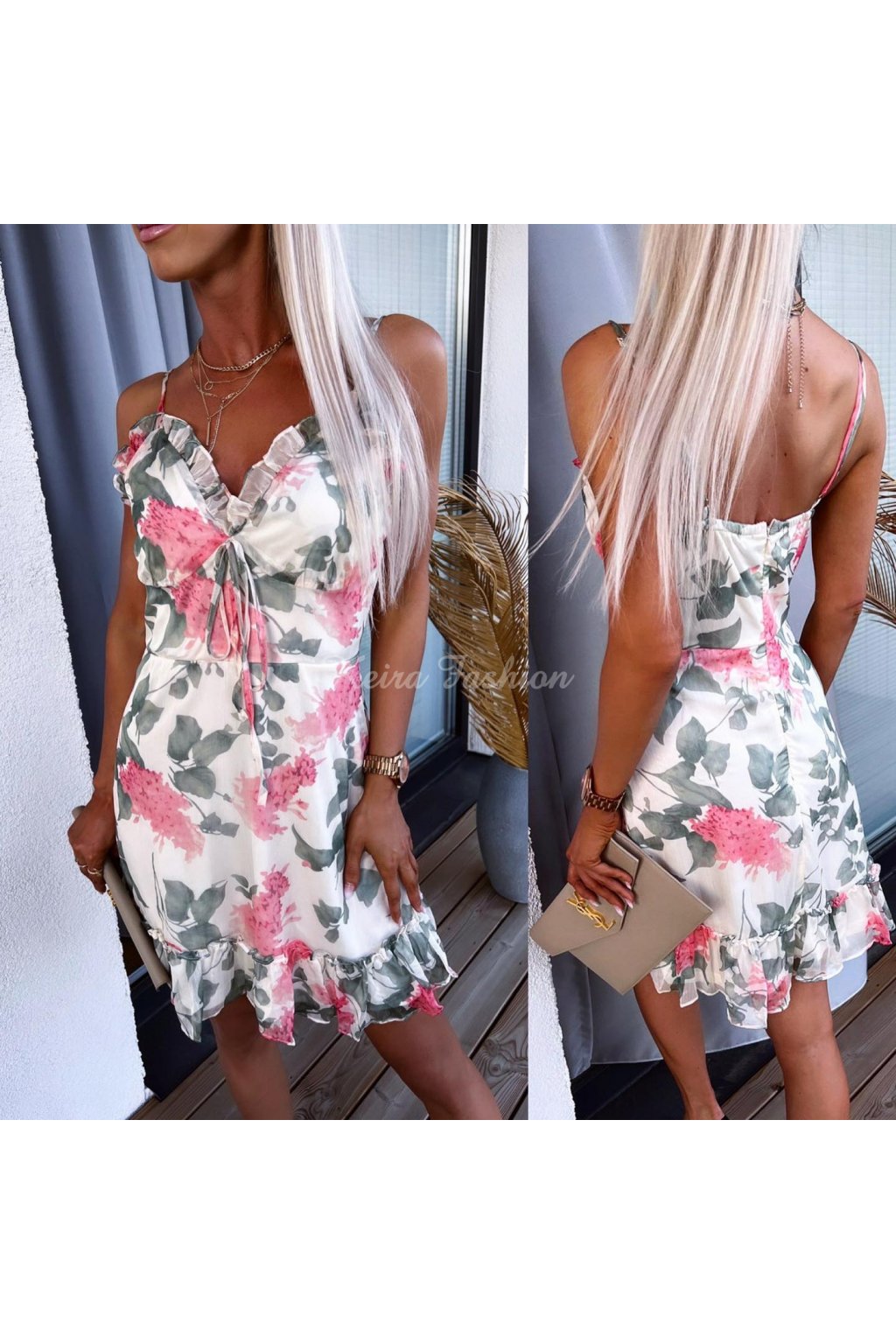 Dodaj svojmu letnému šatníku romantický nádych s týmito ľahkými kvetovanými šatami. Vyrobené z jemného, vzdušného materiálu, ktorý je kompletne podšitý, takže nepresvitá. Materiál nie je elastický, no v zadnej časti chrbta sa nachádza jemná gumička, ktorá zabezpečuje pohodlnejšie prispôsobenie postave. Šaty majú nastaviteľné ramienka, čo umožňuje doladiť si dĺžku podľa potreby. Dekolt zdobí ozdobná mašľa – šnurovanie je len dekoratívne a nemá funkciu stiahnutia. Volánový lem na spodnom okraji dodáva šatám hravý a ženský vzhľad. Skvelá voľba na letné dni, prechádzky mestom, oslavy aj dovolenku. Kvalitné spracovanie, krásny kvetinový vzor a ženský strih robia z týchto šiat štýlový kúsok, v ktorom zažiariš.