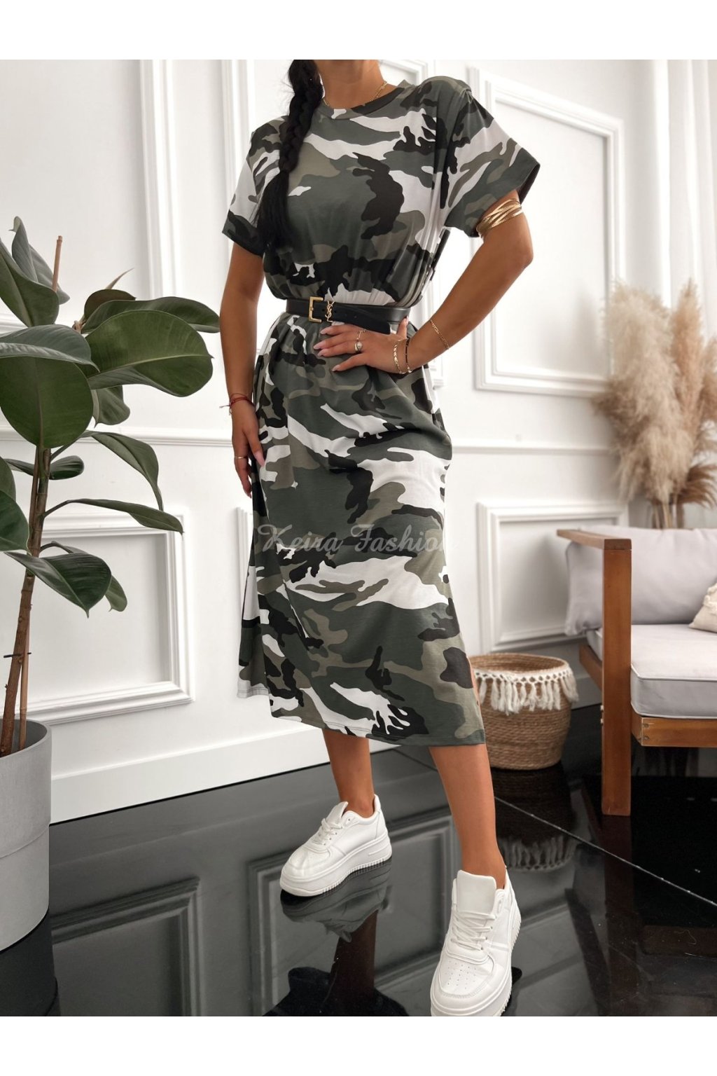 Tieto oversize šaty s maskáčovým vzorom sú ideálnym kúskom pre ženy, ktoré milujú pohodlie bez kompromisov v štýle. Vďaka voľnému strihu pôsobia ležérne, no zároveň veľmi trendy – hodia sa na bežný deň, výlet či mestskú prechádzku. Vyrobené sú zo 100% bavlny, čo zaručuje vzdušnosť, príjemný pocit na pokožke a komfort pri nosení. Na jednej strane sa nachádza rozparok (38cm), ktorý dodáva šatám ľahkosť a ženskosť. Na fotke je použitý opasok, ktorý nie je súčasťou produktu – šaty sa predávajú samostatne. Vzhľadom na OVERSIZE STRIH odporúčame venovať pozornosť výberu veľkosti – šaty sú zámerne voľné, takže sadnú rôznym typom postavy.
