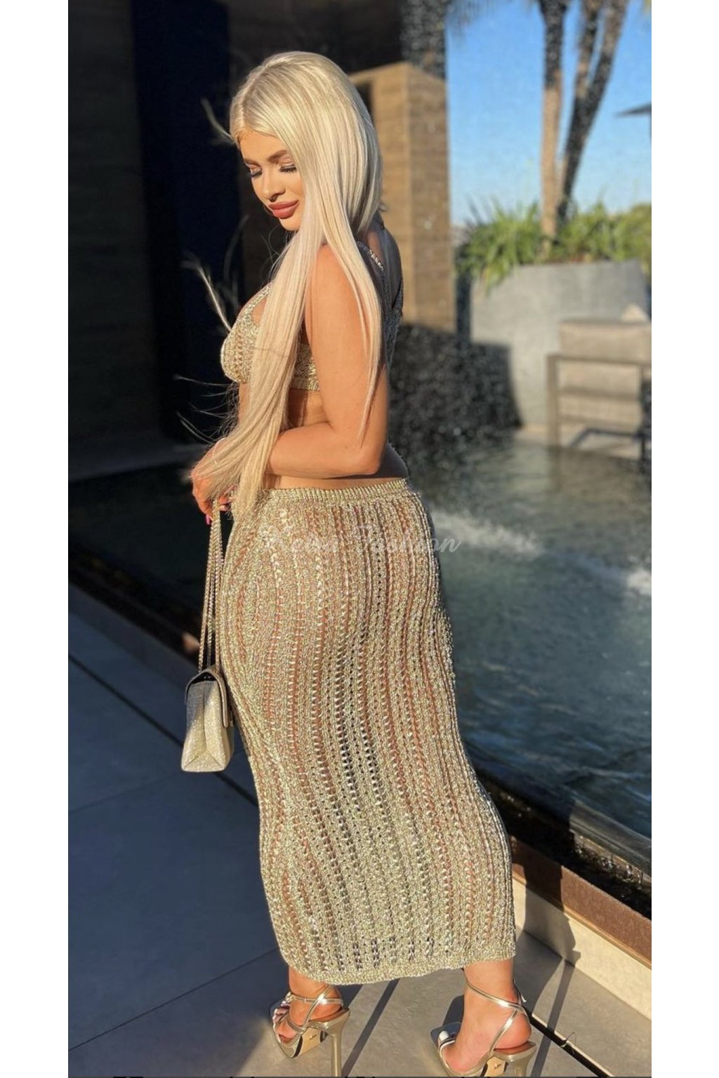 Zaži dokonalý letný vibe v týchto zlatých háčkovaných šatách, ktoré sú ako stvorené na pláž, dovolenku či festival. Ich jemne priesvitný materiál s metalickým leskom nádherne zvýrazní opálenú pokožku a dodá neprehliadnuteľný look. Výrezy na bokoch a vpredu formujú siluetu, zatiaľ čo elastická štruktúra šiat sa pohodlne prispôsobí postave. Ľahké, vzdušné a príjemné na nosenie – ideálne na horúce dni pri mori, keď chceš spojiť pohodlie s glamour štýlom. Šaty sú v univerzálnej veľkosti a odporúčame ich pre postavy typu XS, S a M.