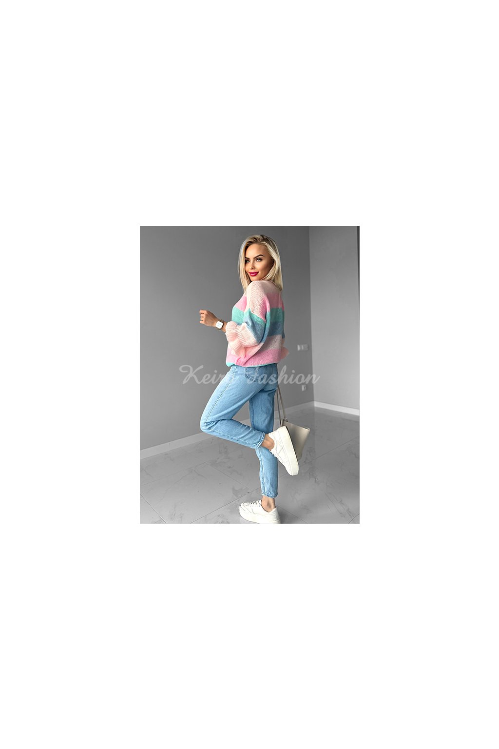 Voľný strih s jemne nariasenými rukávmi dodáva ležérny vibe, zatiaľ čo pastelové horizontálne pruhy v odtieňoch ružovej, mentolovej, a modrej pôsobia sviežo a hravo. Skvele sa kombinuje s rifľami, sukňami aj elegantnými nohavicami.