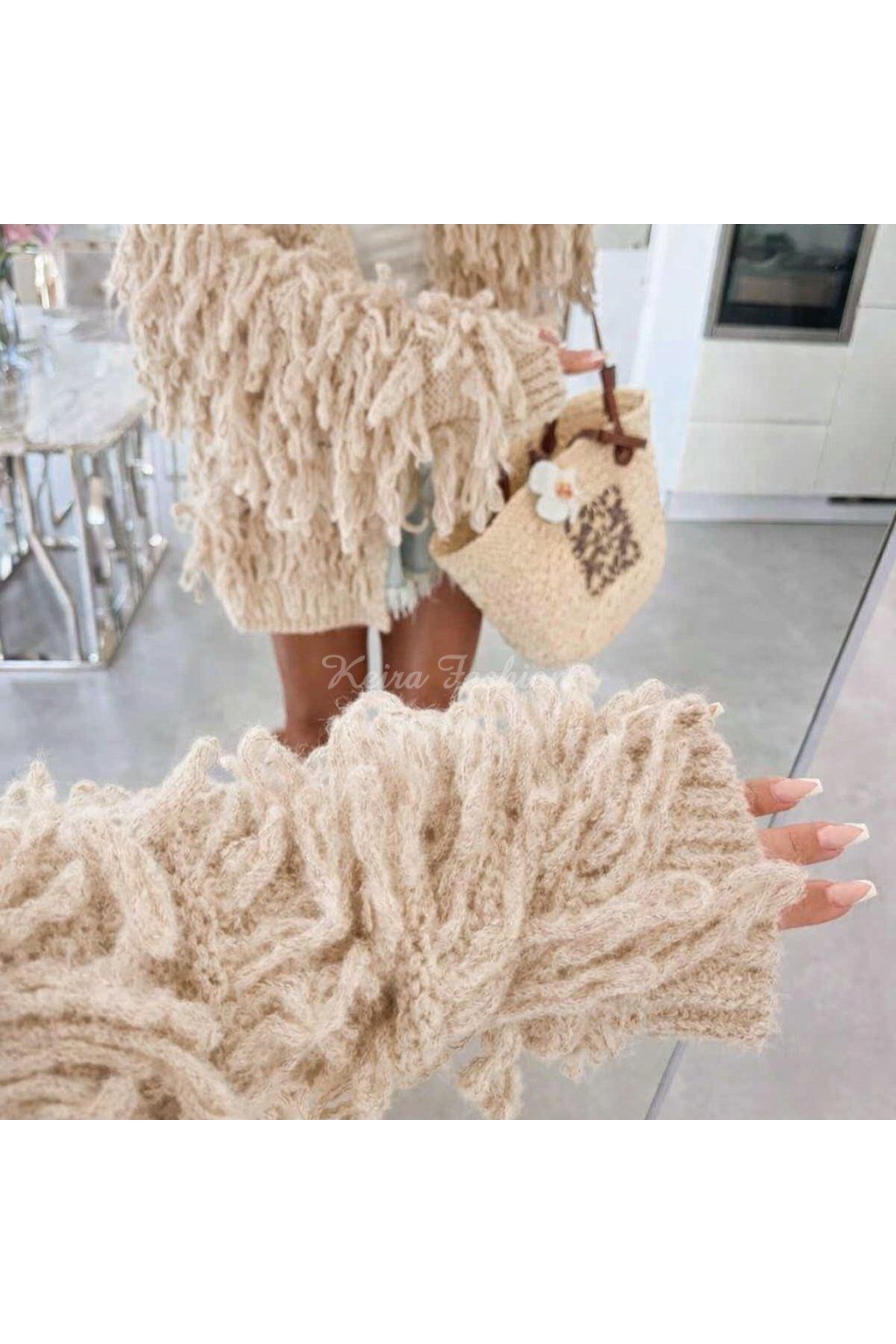 Tento béžový strapatý shaggy kardigán je presne ten kúsok, ktorý dodá každému outfitu štýl a jemne bohémsky nádych. Má mäkký, chlpatý povrch s kratšími vláknami, vďaka ktorému pôsobí zaujímavo už na prvý pohľad. Je to univerzálny, ľahko kombinovateľný kúsok, príjemný na nosenie a perfektne sa kombinuje s jednoduchými kúskami – tielkom, džínsami, šortkami či vysokými čižmami. Vytvorí krásny, ženský look bez námahy a hodí sa na jar, jeseň aj chladnejšie letné večery. Ak hľadáš niečo, čo je pohodlné, trendy a zároveň nadčasové, tento kardigán je presne pre teba.