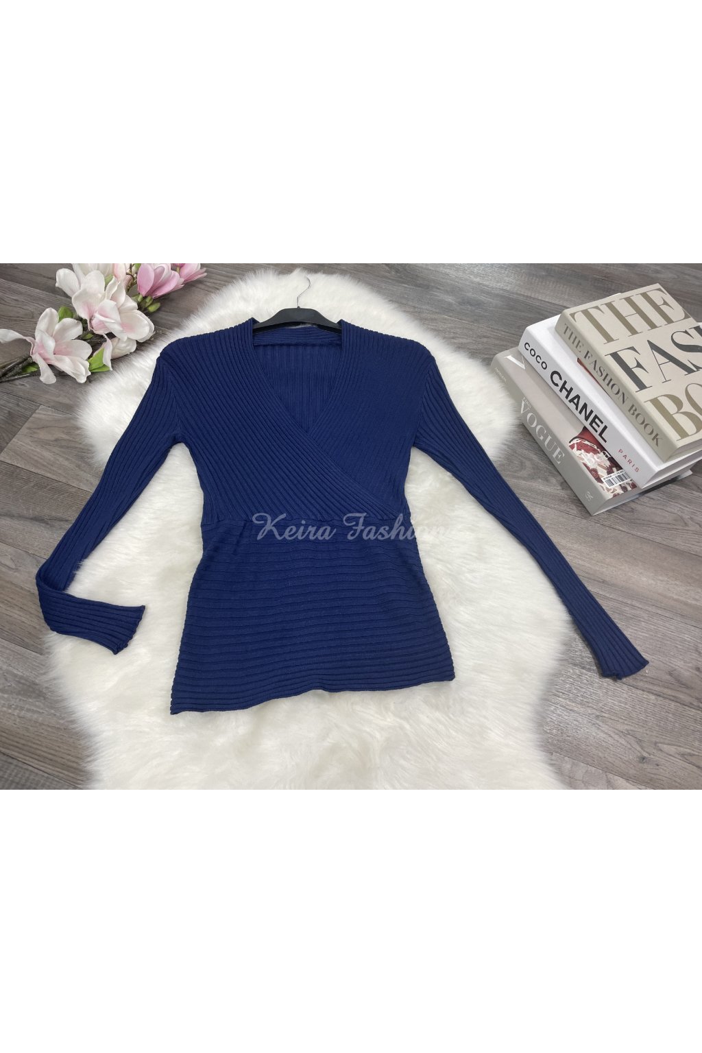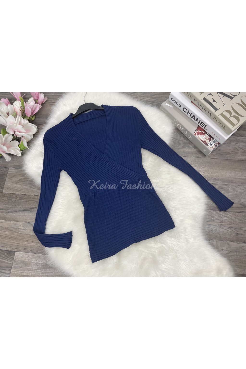 Pulóvrik s výstrihom Ceny - tmavomodrý