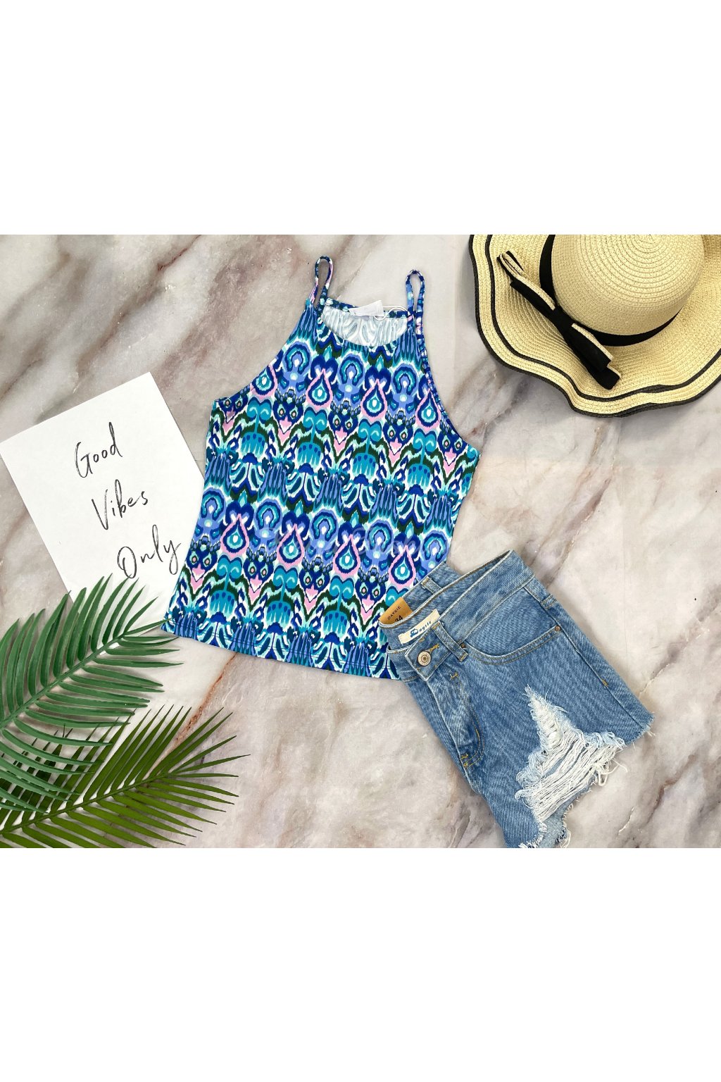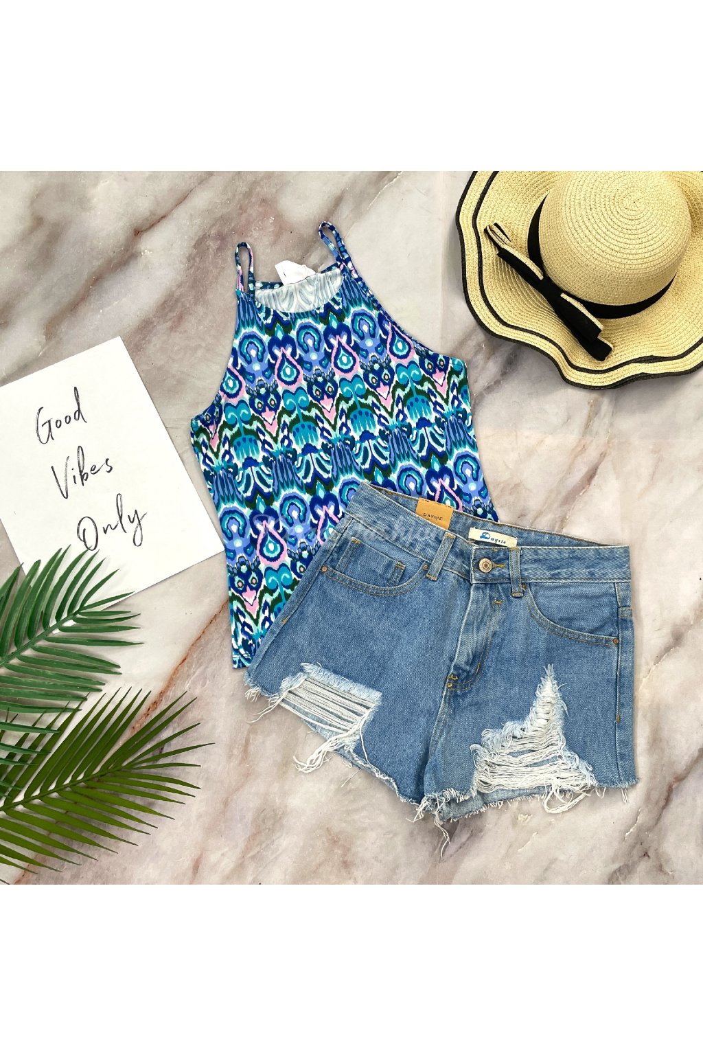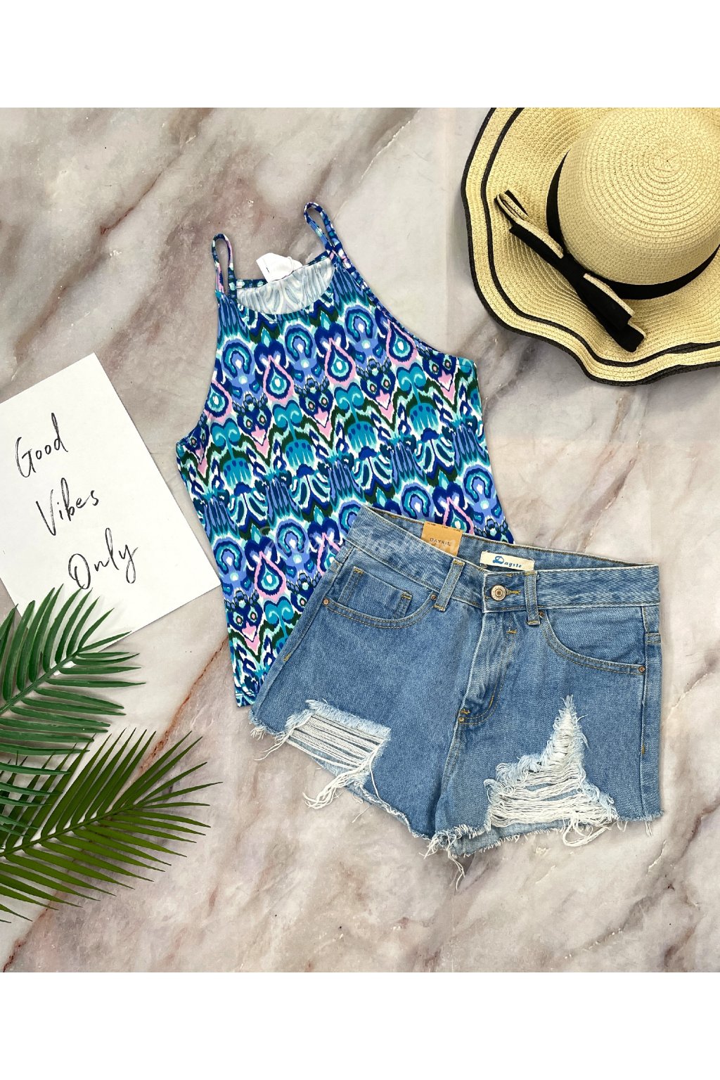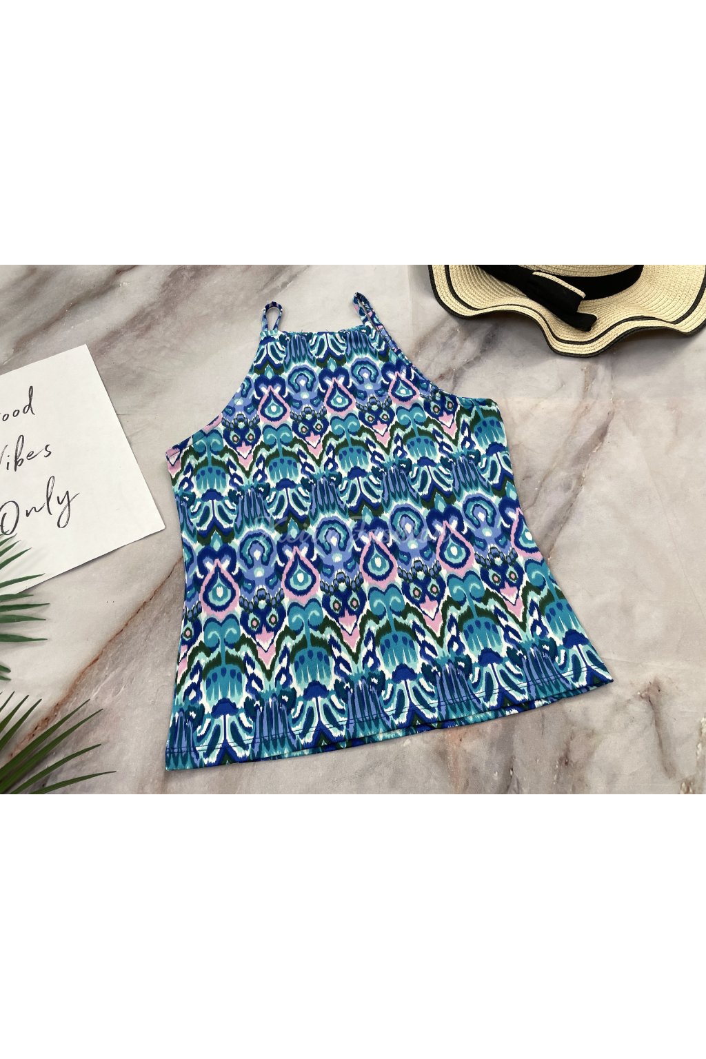 Oživte svoj letný šatník týmto sviežim vzorovaným topom na ramienka v modrej farbe, ktorá zaručene upúta pozornosť. Tento kúsok je vyrobený z veľmi elastického materiálu, ktorý sa dokonale prispôsobí postave a poskytne maximálne pohodlie. Ľahko sa kombinuje s nohavicami, sukňami aj šortkami. V ponuke máme aj zelenú farebnú variantu.