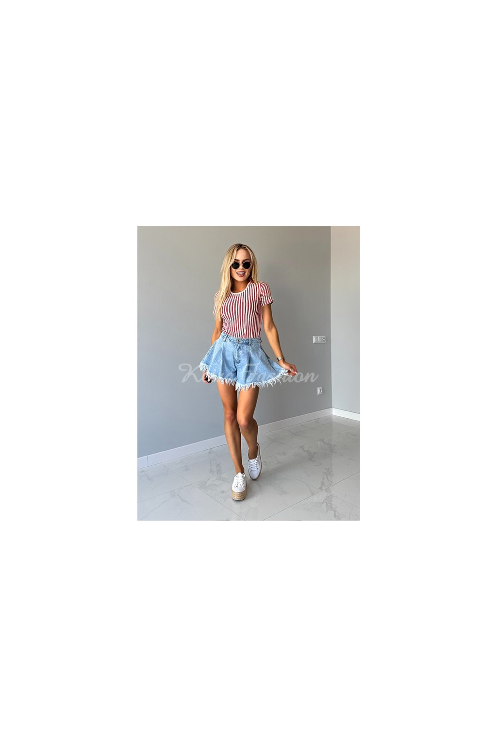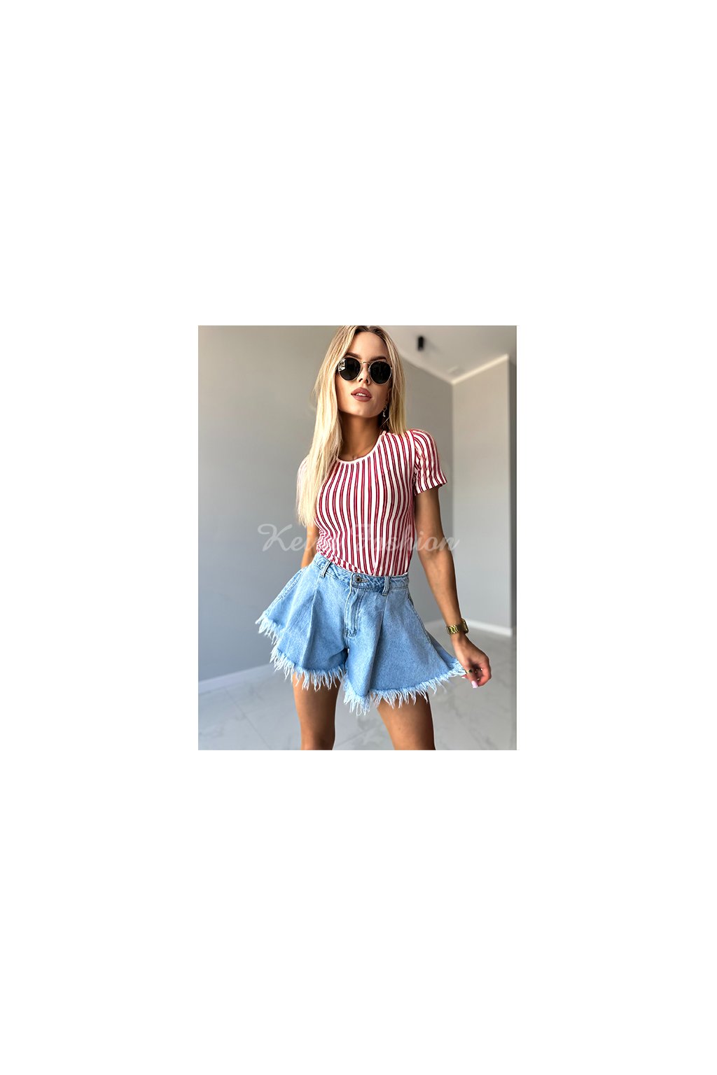 Dámske trendy červeno-biele pásikavé tričko vyrobené z príjemného, elastického materiálu.