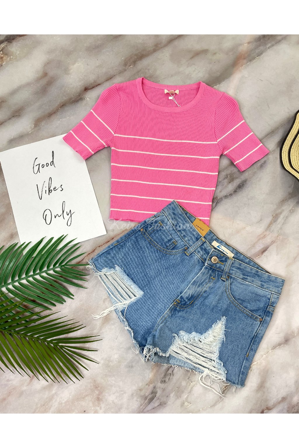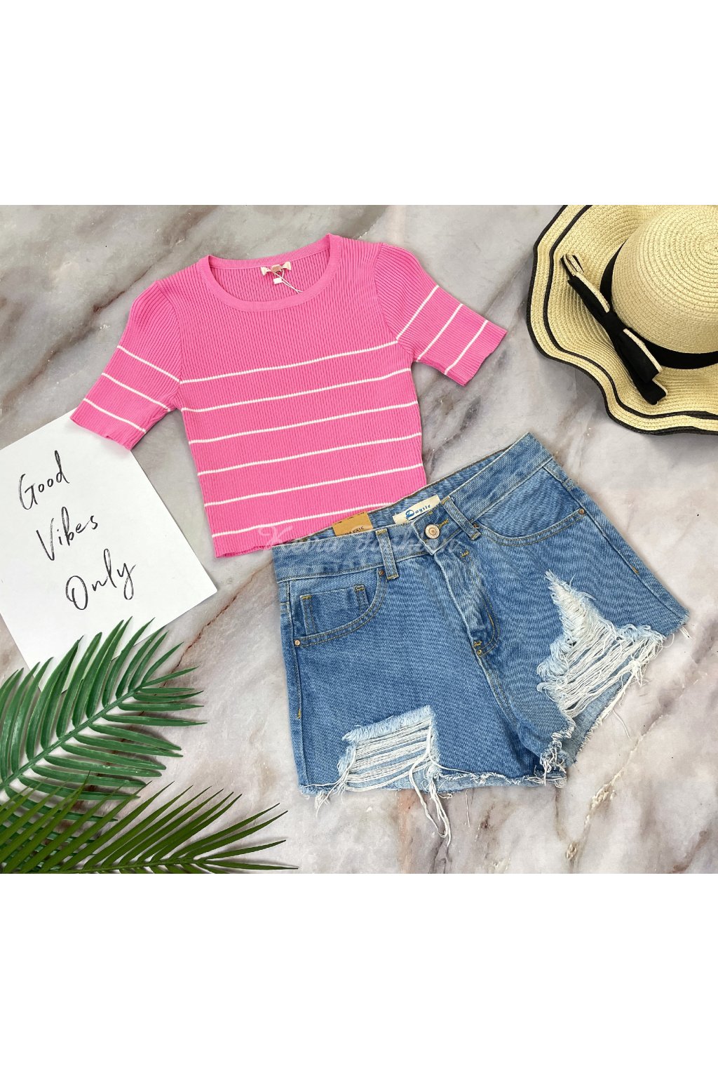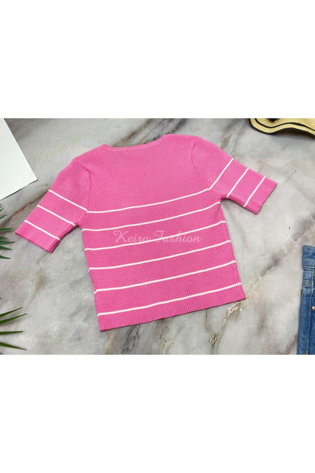 Úpletový pásikavý ružový crop top