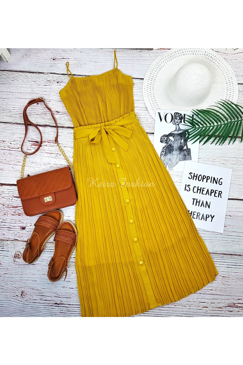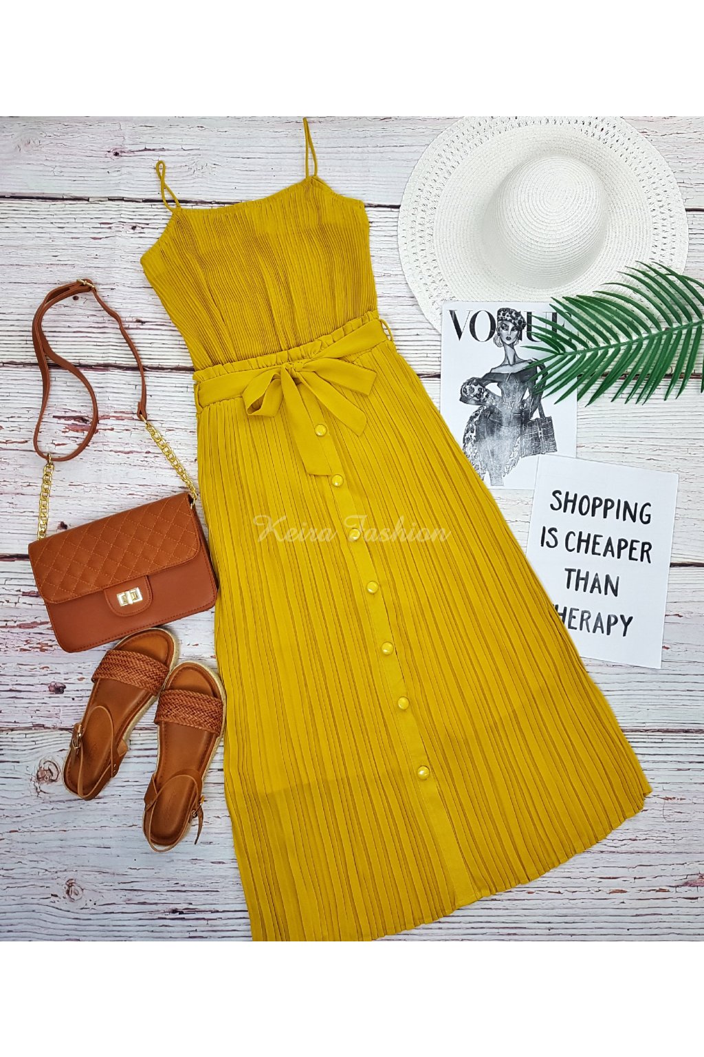 Táto dámska blúzka je vyrobená z ľahkého a vzdušného materiálu – šifónu, ktorý je príjemný na nosenie počas horúcich letných dní. Plisovaný dizajn dodáva blúzke elegantný a sofistikovaný vzhľad, zatiaľ čo jemné volány na spodnom okraji pridávajú ženský a hravý nádych. Blúzka má tenké, elastické ramienka, ktoré zabezpečujú pohodlné nosenie a zároveň pekne zvýraznia ramená. Strih blúzky je mierne voľný, čo zaručuje komfort a voľnosť pohybu. Žltá farba blúzky je výrazná a svieža, ideálna na letné obdobie, ktorá skvele oživí váš šatník a dodá vašim outfitom teplý a slnečný nádych. Perfektne sa hodí k džínsovým kraťasom, sukniam aj elegantným nohaviciam.